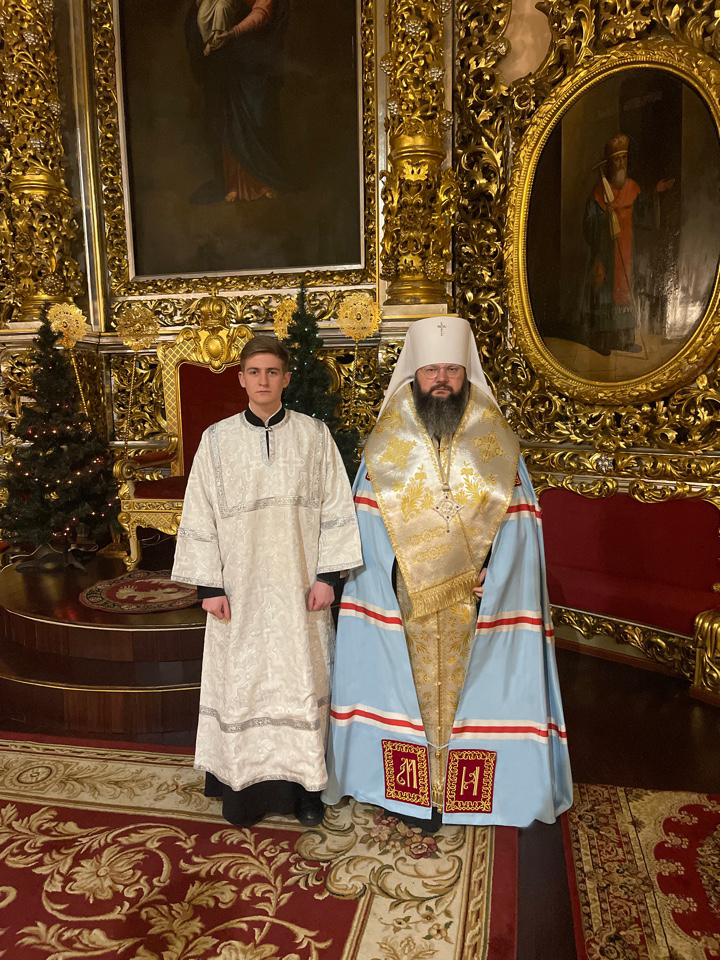 За богослужением была совершена хиротесия во чтеца студента 4 курса Смоленской Православной Духовной семинарии Константина Гарина.