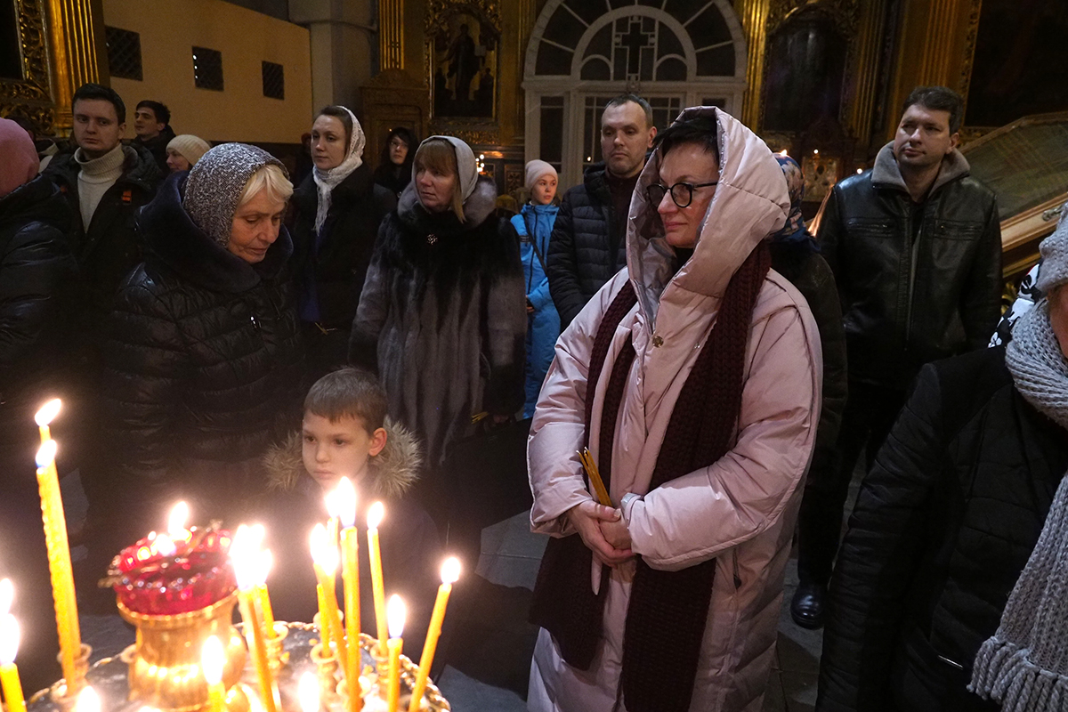 За праздничным Всенощным бдением молились прихожане кафедрального храма, жители города Смоленска и паломники.