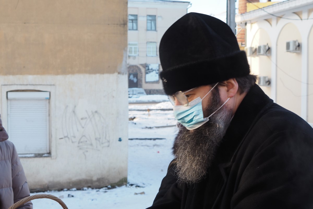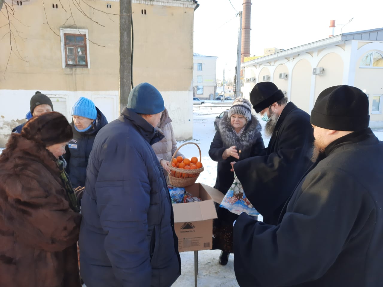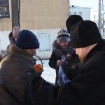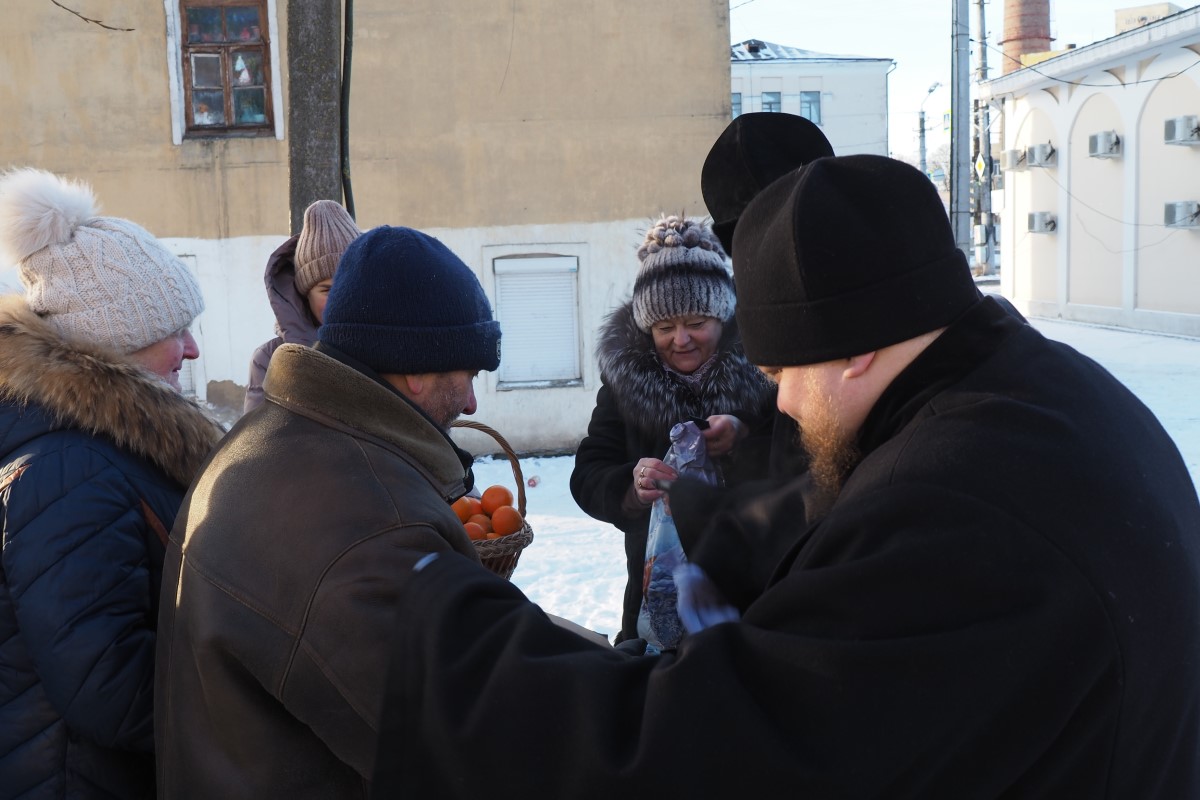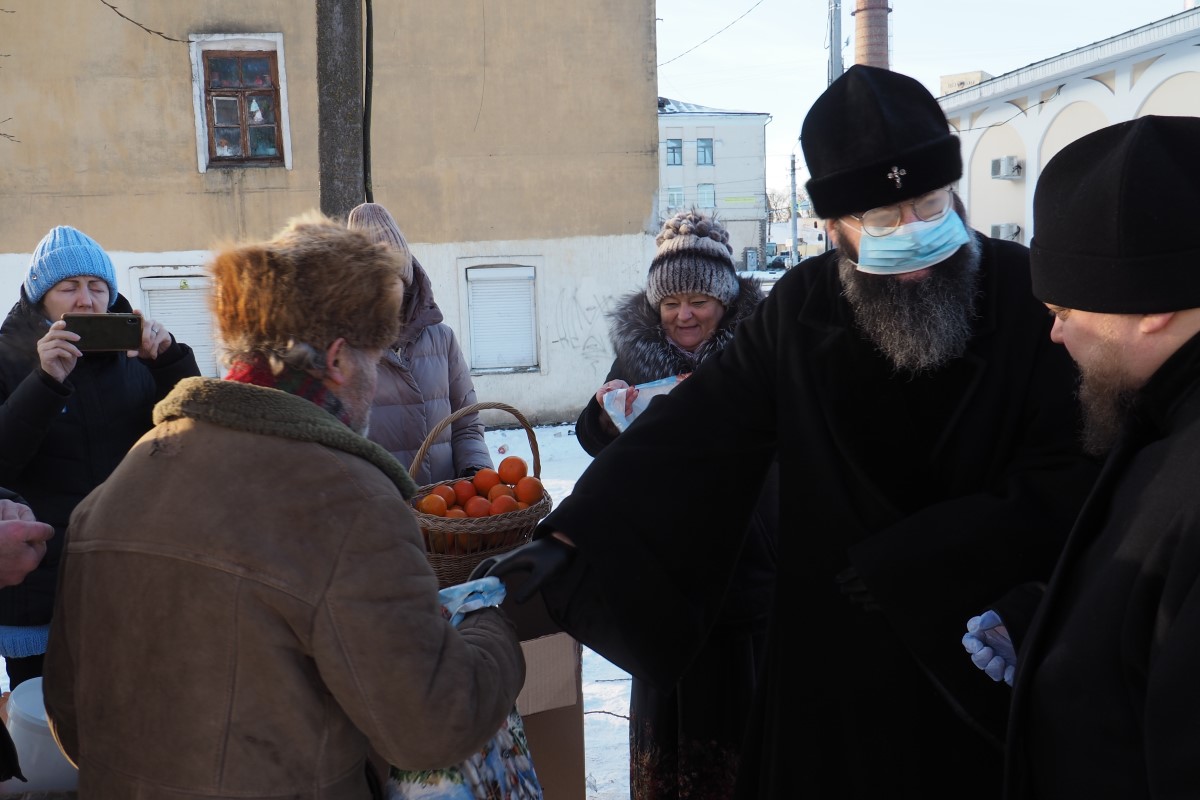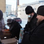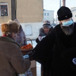 Владыка Исидор поздравил всех с Рождеством Христовым и вручил рождественский подарок и мандарины каждому, пришедшему в этот морозный день подкрепиться горячим обедом.