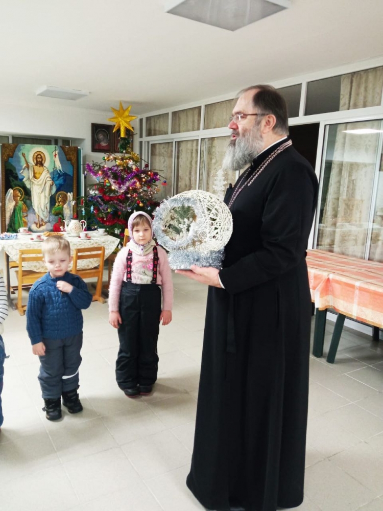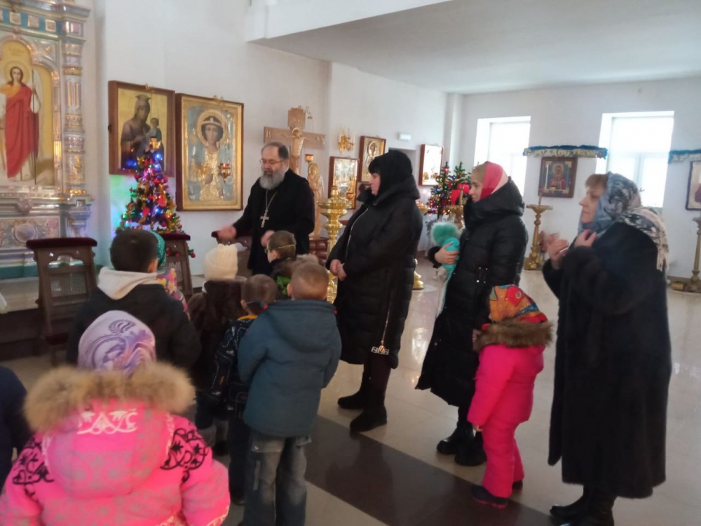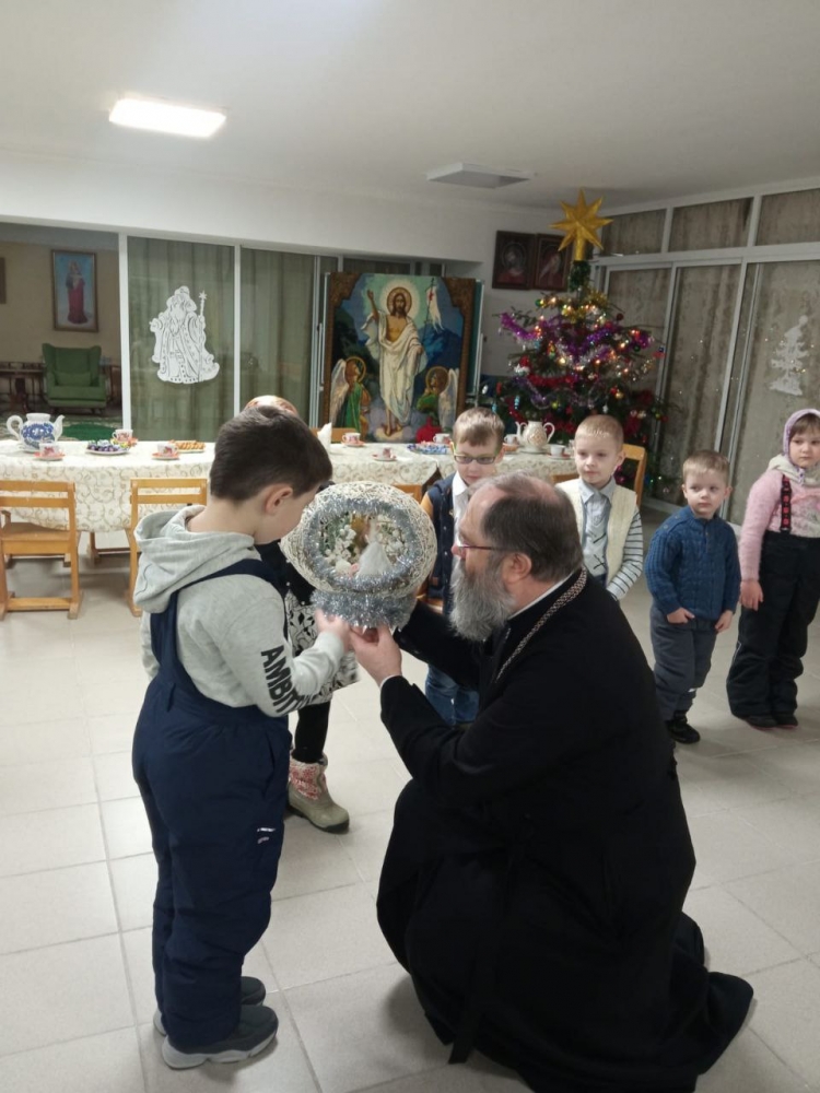 В сопровождении воспитателя Лианы Альбертовны Арутюнян, учителя-логопеда Натальи Олеговны Тягнирядно и родителей дети группы посетили Свято-Георгиевский собор. Настоятель собора протоиерей Василий Мовчанюк провёл для них небольшую экскурсию по собору и рассказал о родившемся Богомладенце. Общение продолжилось в приходском зале за чаепитием, а затем дети с удовольствием читали выученные к празднику стихи.