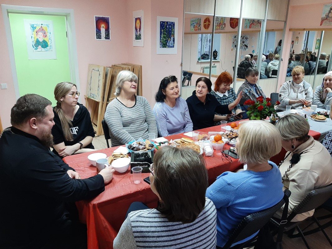 За чашкой чая пенсионеры побеседовали с батюшкой о результатах проекта и рассказали о своих впечатлениях.