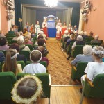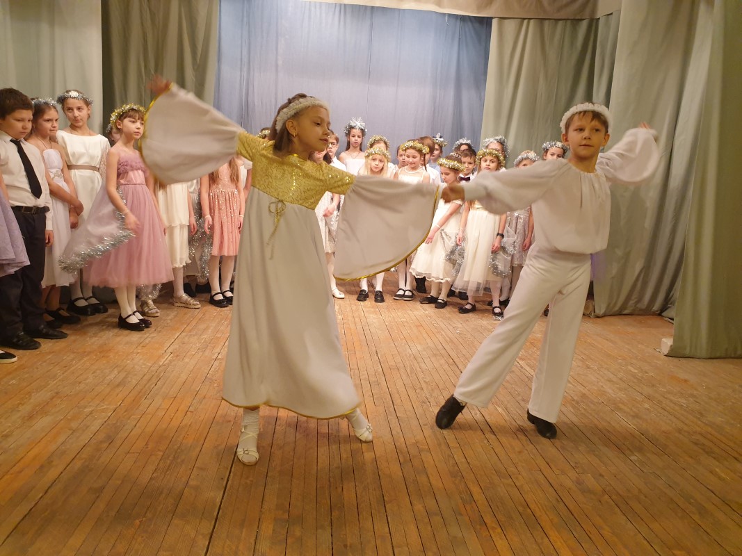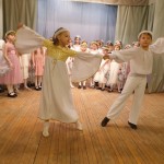В Доме Учителя собрались ветераны педагогического труда. Гимназисты для них подготовили праздничный концерт: в первой части концерта учителя увидели выступление актеров Вертепного театра «Старый город», во второй части их радовали песнопения хора начальной школы, которые чередовались с хореографическими номерами. Особым теплом встретили гости исполнение на флейте ученицы 2 класса Сотниченко Таисия и бальный танец Сененкова Александра и Травкиной Маргариты.
