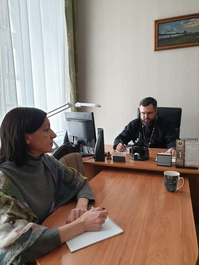 В онлайн-встрече приняли участие руководитель Отдела Смоленской епархии по взаимоотношениям Церкви с обществом и СМИ протоиерей Валерий Рябоконь и заместитель руководителя епархиального Отдела по взаимоотношениям Церкви с обществом и СМИ Мария Сергеевна Жукова.
