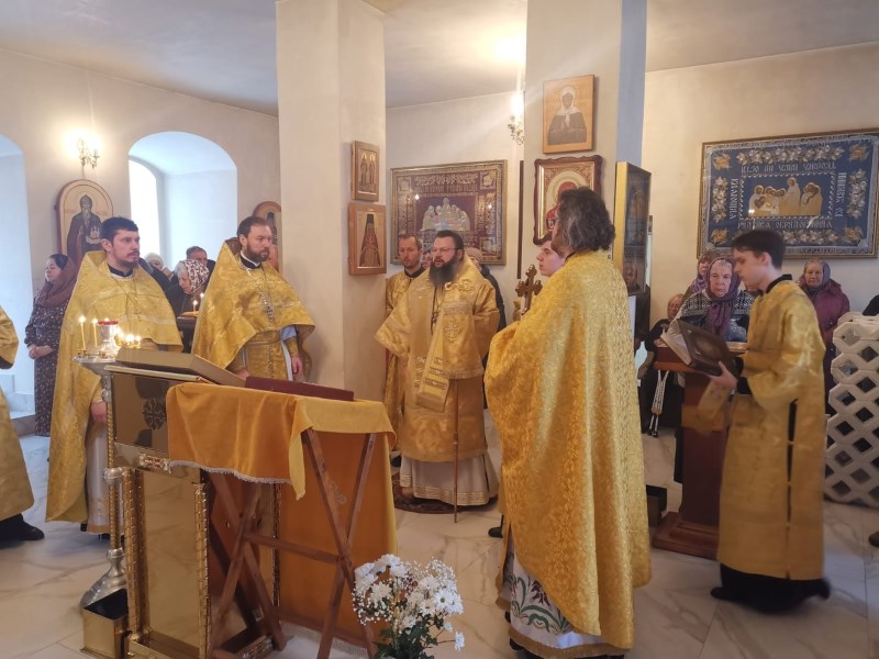 Богослужение возглавил митрополит Смоленский и Дорогобужский Исидор. Его Высокопреосвященству сослужили благочинный Борисоглебского церковного округа протоиерей Андрей Мельничук, настоятель храма иерей Максим Мищенко, настоятель храма в честь святой мученицы Татианы иерей Димитрий Литвищенко и духовенство Смоленской епархии.