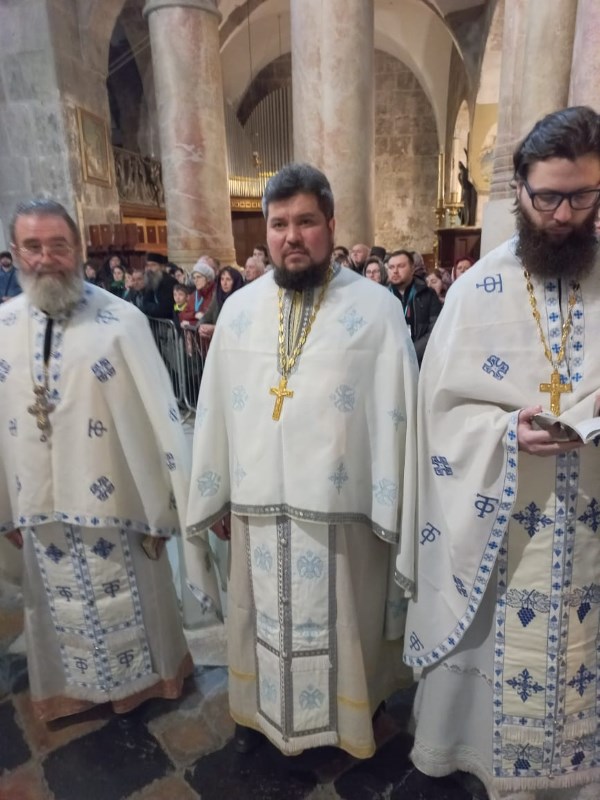 После этого протоиерей Роман Павлишов сослужил духовенству Иерусалимского патриархата ночную Литургию на Гробе Господнем в праздник Сретения Господня.