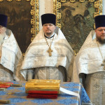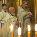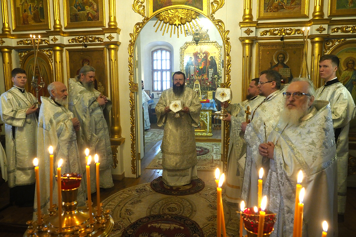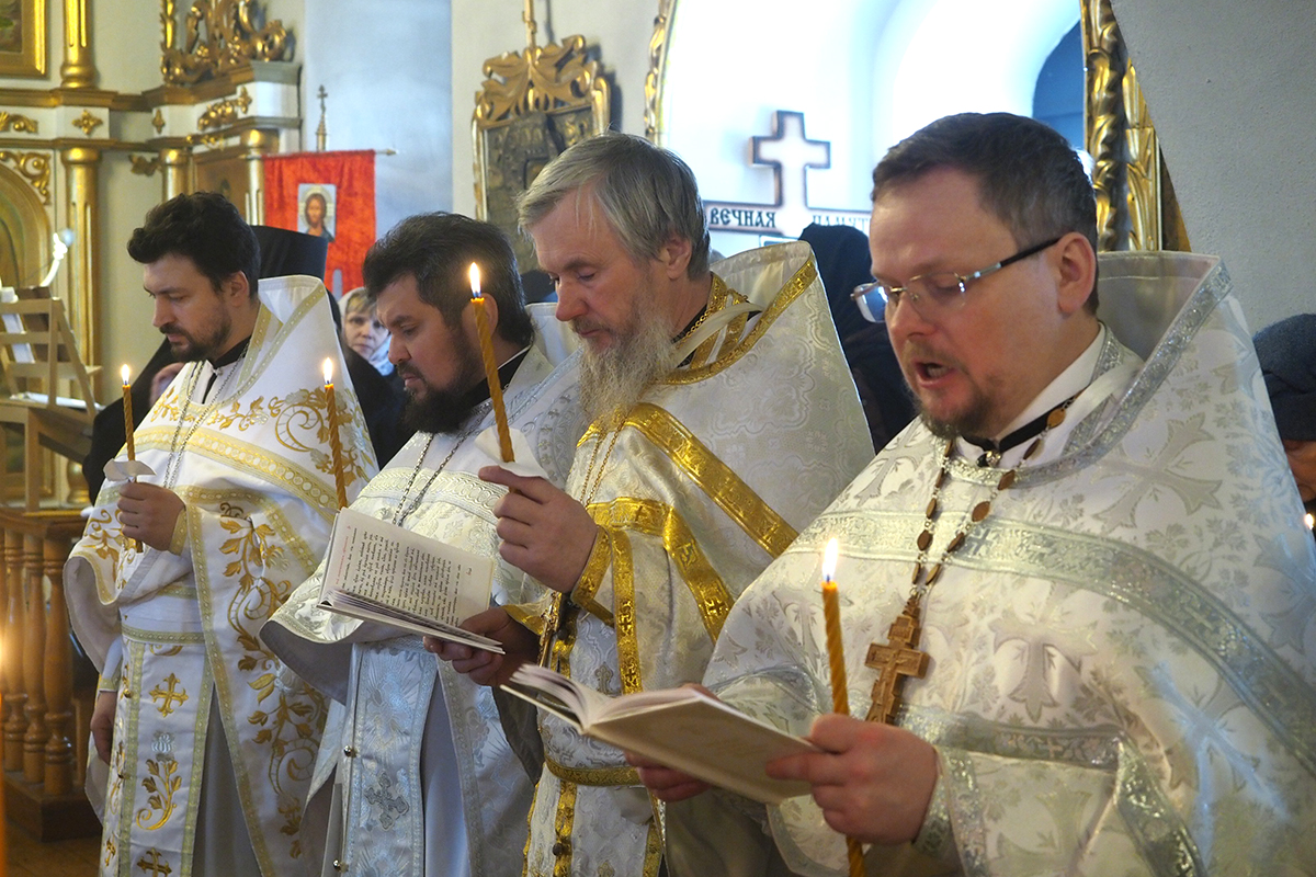 Высокопреосвященнейшему Владыке сослужили благочинный Петропавловского церковного округа иерей Дионисий Давыдов, настоятель храма в честь Архангела Михаила протоиерей Павел Петровский, настоятель храма в честь святого Меркурия Смоленского протоиерей Владимир Дмитриев, настоятель храма свв. прпп. Антония и Феодосия Печерских иерей Александр Коржаков, клирики Смоленской и других епархий.