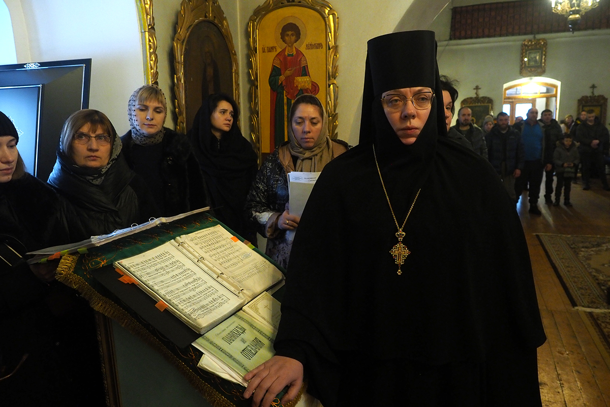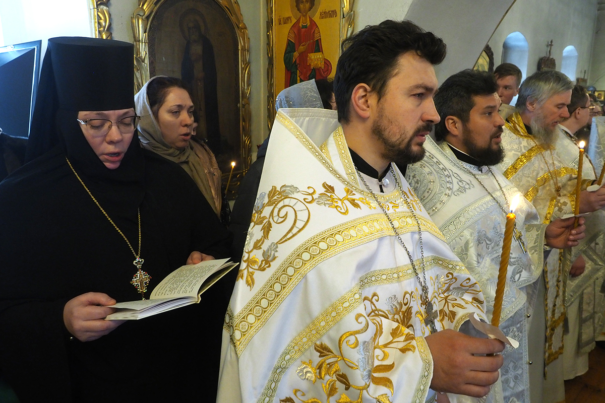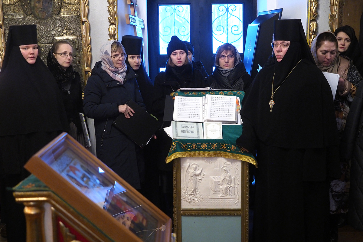 Песнопения богослужения исполнил хор Спасо-Вознесенского монастыря под управлением игумении Елисаветы (Киселевой) и Архиерейский хор (регент – Елена Фролова).