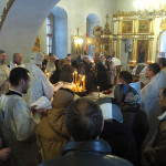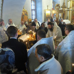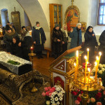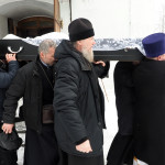 После Божественной литургии митрополит Смоленский и Дорогобужский Исидор совершил Чин Отпевания новопреставленного протоиерея Николая Белоусова, который на протяжении 24 лет (1988-2012) являлся настоятелем Прихода храма свв. прпп. Антония и Феодосия Печерских в селе Печерск, пользовался неизменной любовью и глубоким уважением священнослужителей и мирян.