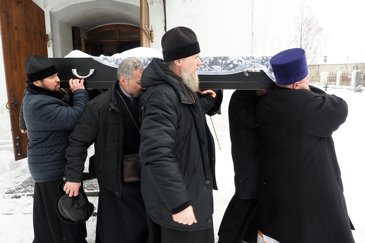 По окончании заупокойного богослужения гроб с телом протоиерея Николая при пении церковных песнопений был обнесен вокруг храма.