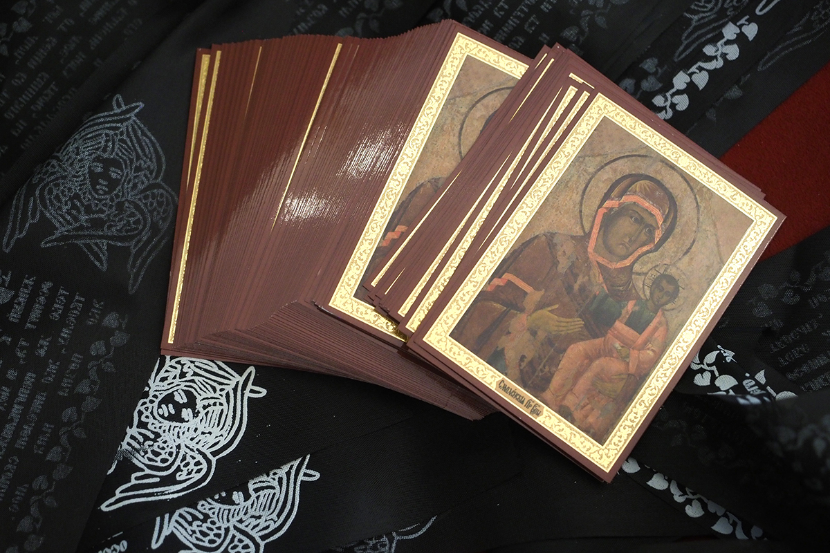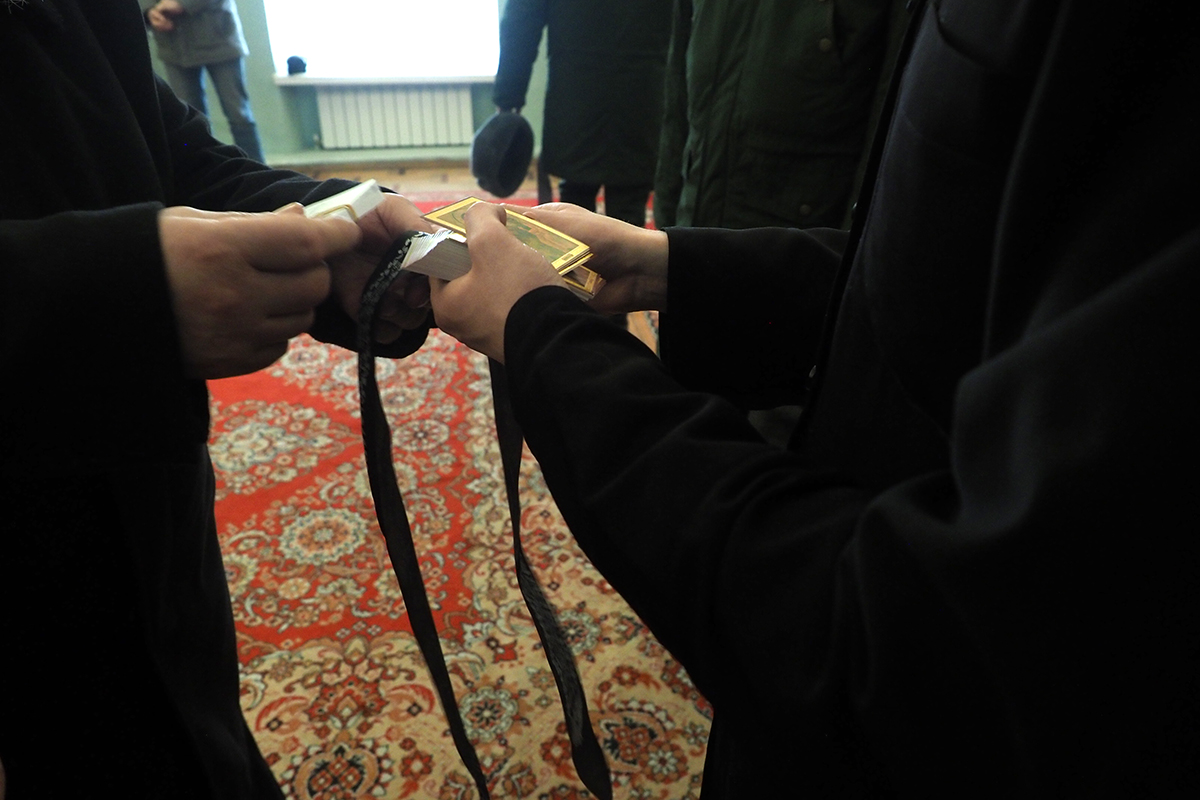 В завершение встречи протоиерей Григорий Трубин вручил каждому военнослужащему карманную икону Смоленской Божией Матери «Одигитрия», поясок с молитвой и молитвослов православного воина.