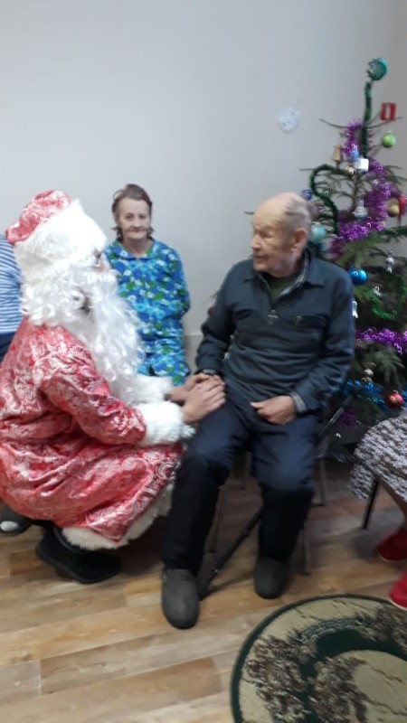 Дед Мороз и Снегурочка были героями воскресного визита. Вместе со стариками они пели и читали стихи, разучивали рождественские песни. Подарки вызвали множество эмоций – теплые яркие носки с узорами покорили всех. И какой же праздник без мандаринов! Но бабушки отметили, что самое главное – это внимание.
