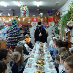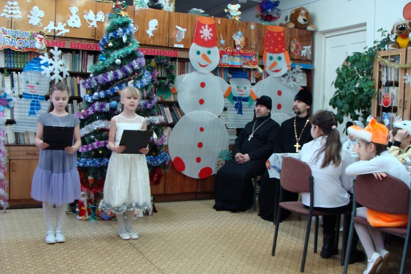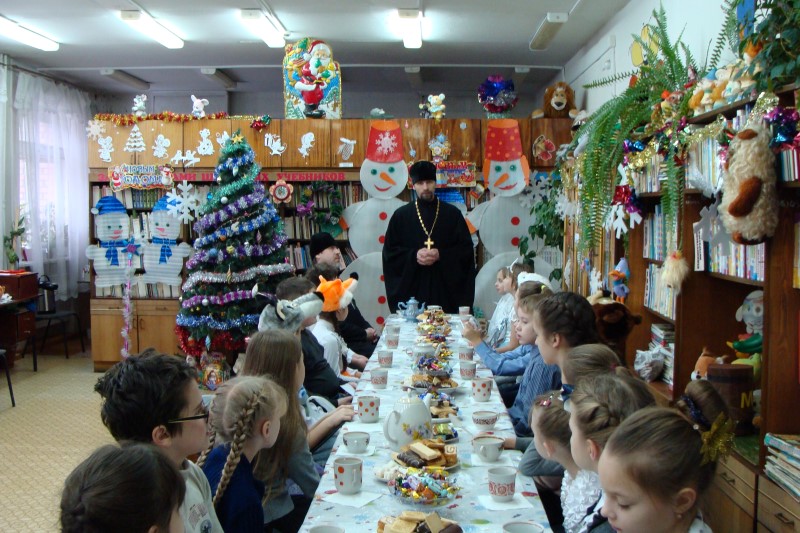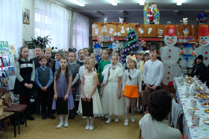 На праздник собрались духовенство храма Кирилла и Мефодия, педагоги, дети и родители. Встреча началась с совместного чаепития за которым настоятель храма Кирилла и Мефодия иерей Владимир Баринов рассказал собравшимся о празднике Рождества Христова, святках и о том, как в эти дни правильно поздравлять близких и славить родившегося Богомладенца Христа в соответствии с национальной культурой.