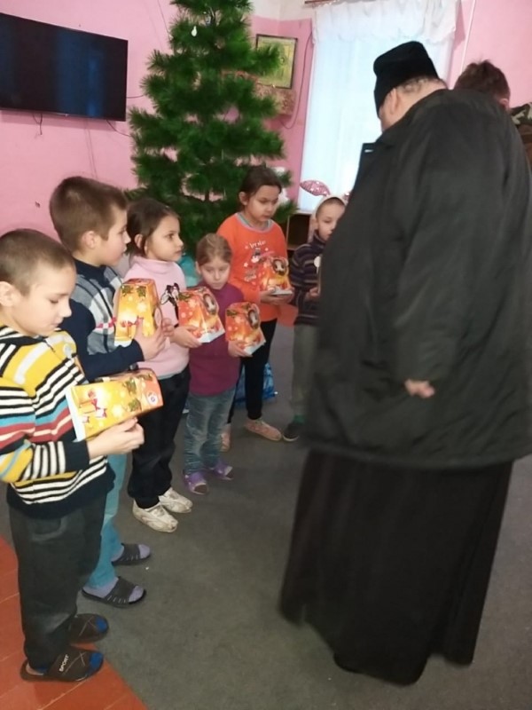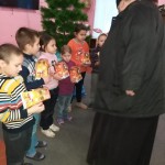 Дети были рады теплому общению и подаркам. Священник рассказал ребятам о празднике, о традициях Рождественских Святок. Ребята из Православной семьи спели колядки, а малыши из Приселья прочли стихи о празднике Рождества Христова.