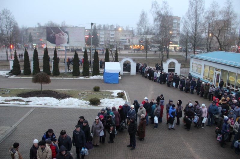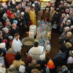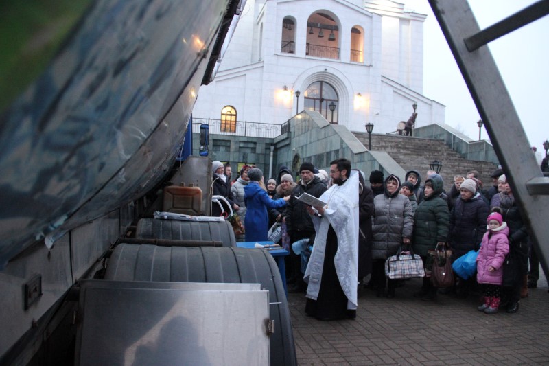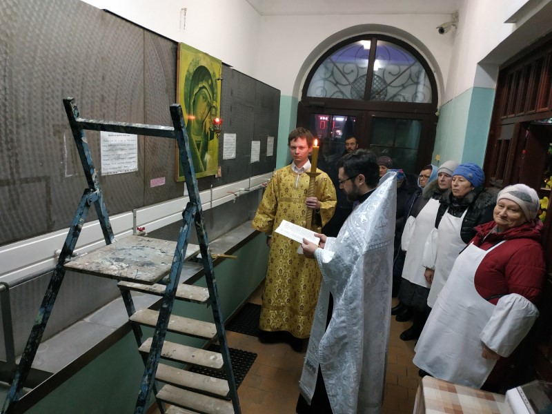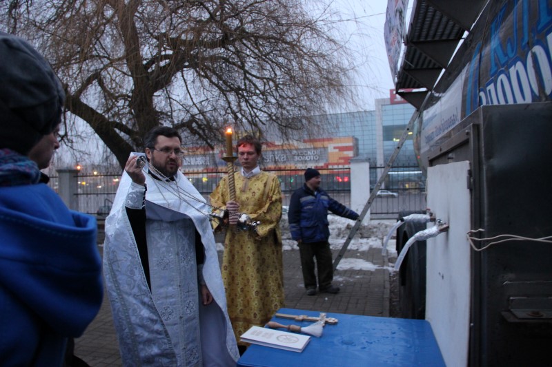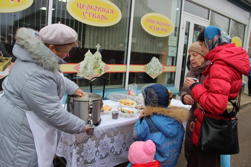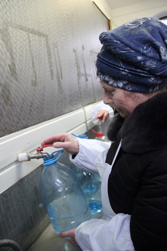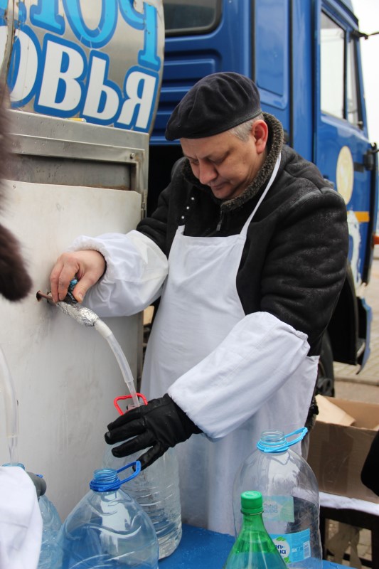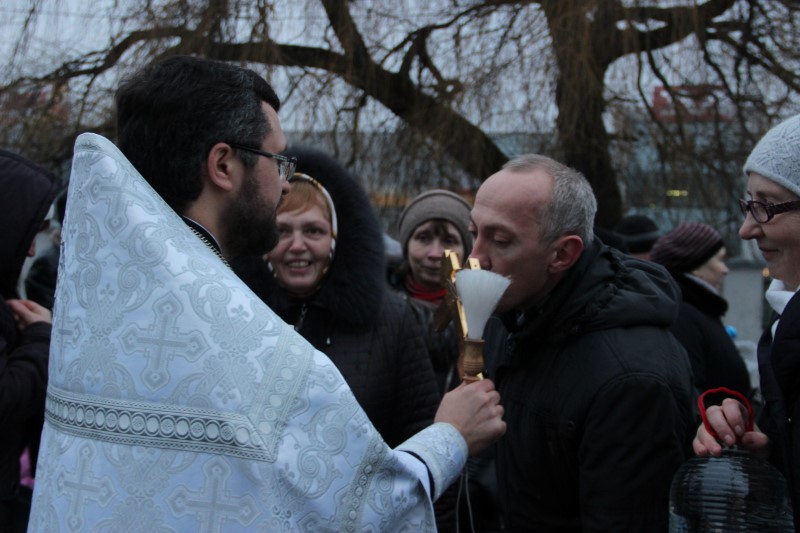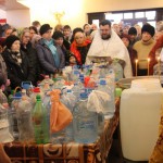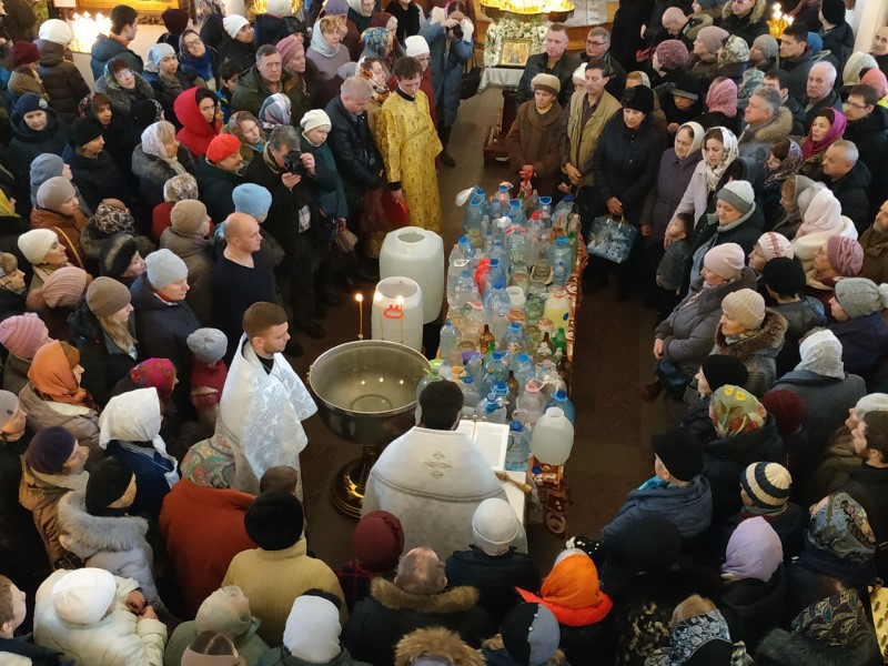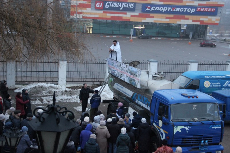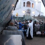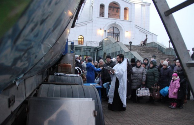Для удобства людей на территории храма были организованны две точки выдачи воды: стационарные баки для освящения воды под лестницей храма и машина «Ключ здоровья», вода в которой была также освящена. Пришедшим в храм за святой водой был предложен горячий чай и сладости.