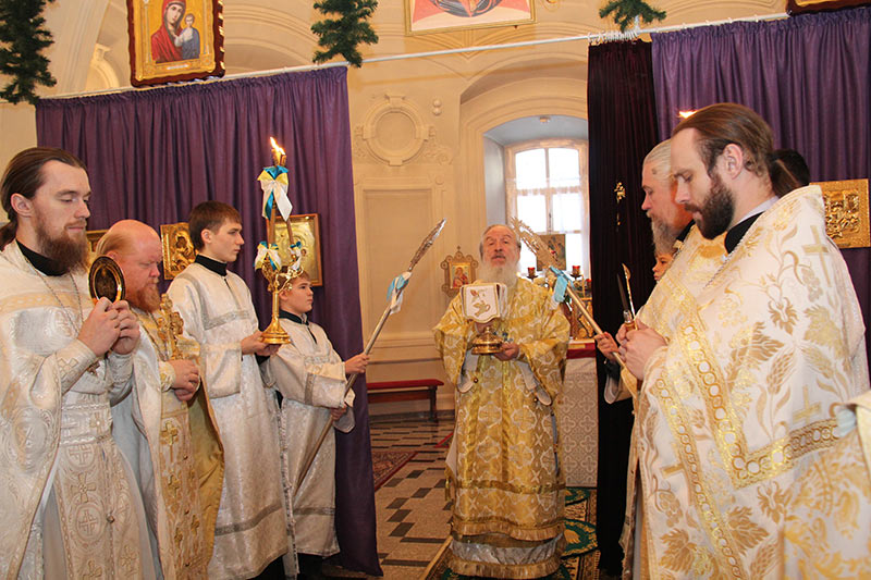 За Божественной литургией Его Высокопреосвященству сослужили благочинный Тюменского благочиния протоиерей Андрей Сбитнев, настоятель храма во имя святителя Николая г.Тюмени протоиерей Ростислав Петров, штатный клирик Ильинского женского монастыря иерей Владимир Игнатов, штатные клирики Знаменского кафедрального собора г. Тюмени иерей Стефан Любимов, протодиакон Антоний Сушков, благочинный Софийско-Успенского собора Тобольского кремля протодиакон Виталий Виштак.