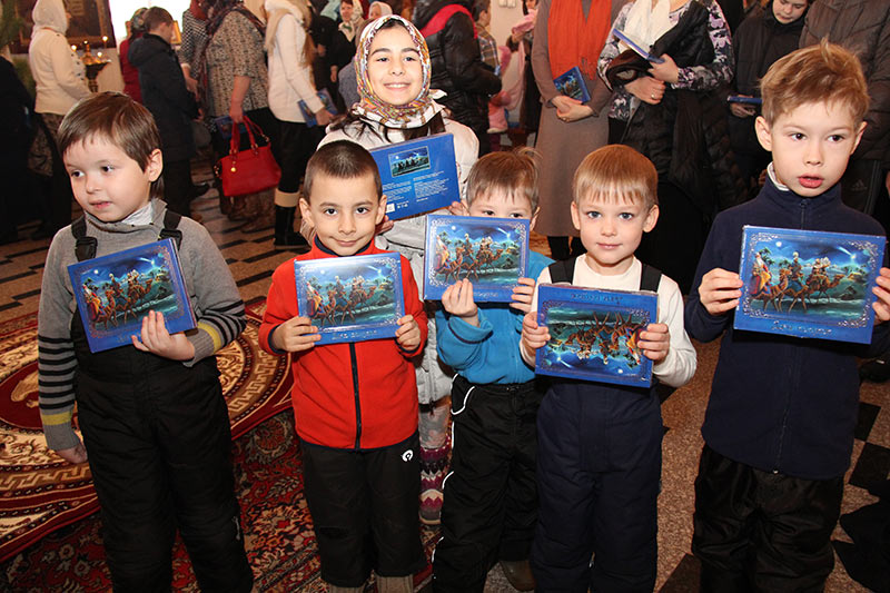 По совершении Святого Причастия, митрополит Димитрий обратился к молившимся с теплым поздравительным словом и вручил всем, кто молился на Литургии –детям и взрослым- сладкие подарки.