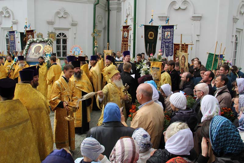 Под звон колоколов праздничный крестный ход закончился у стен Знаменского собора, где Высокопреосвященнейший Димитрий поздравил всех с праздником и преподал пришедшим Божие благословение.