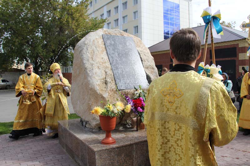 От собора крестный ход проследовал до Спасской церкви, где на площади за алтарем владыка Димитрий отслужил молебен. У Поклонного креста, расположенного рядом, была совершена лития по невинно убиенным в годы гражданской войны. Шествие продолжилось до места, разрушенного в богоборческие годы храма в честь Успения Божией Матери, который до 1932 г. находился на пересечении улиц Кирова (до 1922 года – Крестьянская) и Хохрякова (Успенская). Успенская церковь, возведенная в стиле сибирского барокко, была уникальным памятником архитектуры дореволюционной Тюмени.
