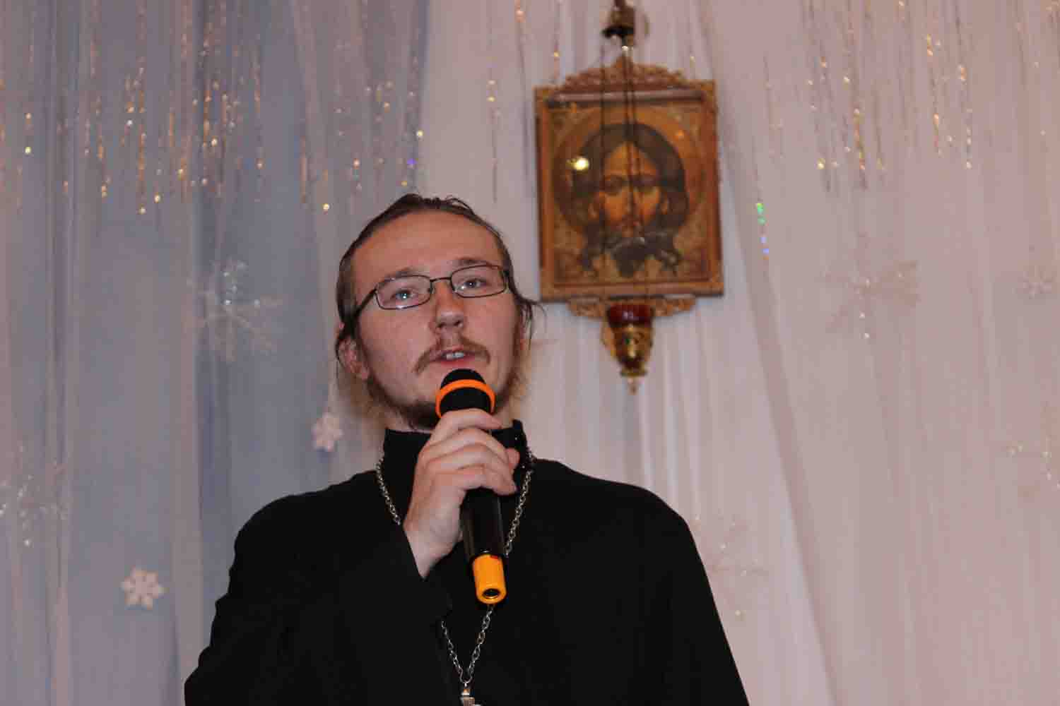 В 12:00 в Актовом зале Духовно-просветительского центра собрались около 200 человек – победители конкурса-выставки «Русь святая молодая православная». Перед гостями с приветственным словом выступил заведующий отделом по работе с детьми и молодежью Тюменского благочиния иерей Сергий Альников. Далее воспитанниками Воскресной школы при храме в честь иконы Божией Матери «Целительница» был показан небольшой рождественский концерт со сценкой, колядками и стихотворениями. После Воскресной школы молодежный хор «Латерна» спел Тропарь и Кондак Рождества Христова и несколько колядок.