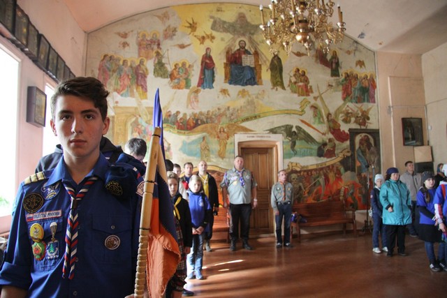 |  |  | Организаторами сбора выступили региональные отделения Братства православных следопытов (БПС) и Всероссийской скаутской ассоциации (ВСА). Поводом для совместного мероприятия двух скаутских организаций послужило прибытие в Свято-Троицкую церковь г.Томска частицы св. мощей покровителя скаутов св. Георгия Победоносца. Также была продолжена давняя традиция собираться во время праздника Воздвижения для обсуждения прошедших летом лагерей и походов. Сбор был открыт 25 сентября торжественным построением во дворе Свято-Троицкой церкви. Были подняты флаги ВСА и БПС. Затем прошел молебен перед частицей мощей св. вмч. Георгия Победоносца. После этого началась игра по близлежащим улицам города «Гонка патрулей», в которой кроме скаутских отрядов из Томска и Колпашево участвовали группы детей воскресных школ. В завершении сбора ребята обменялись впечатлениями о прошедшем скаутском лете.    Фото: Александр Демьянчук, Евгения Кузнецова.