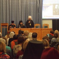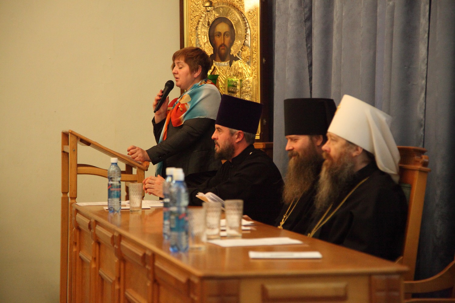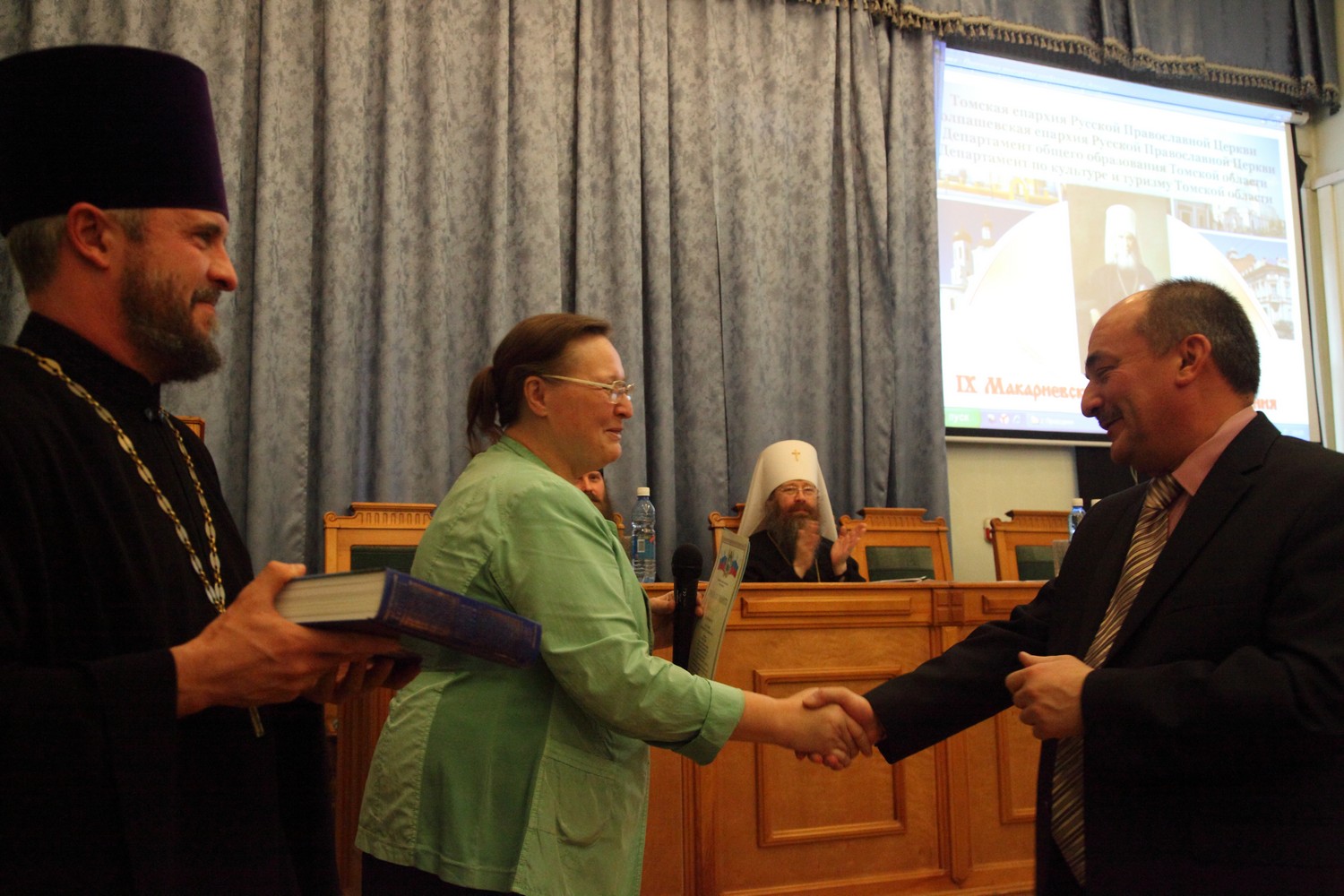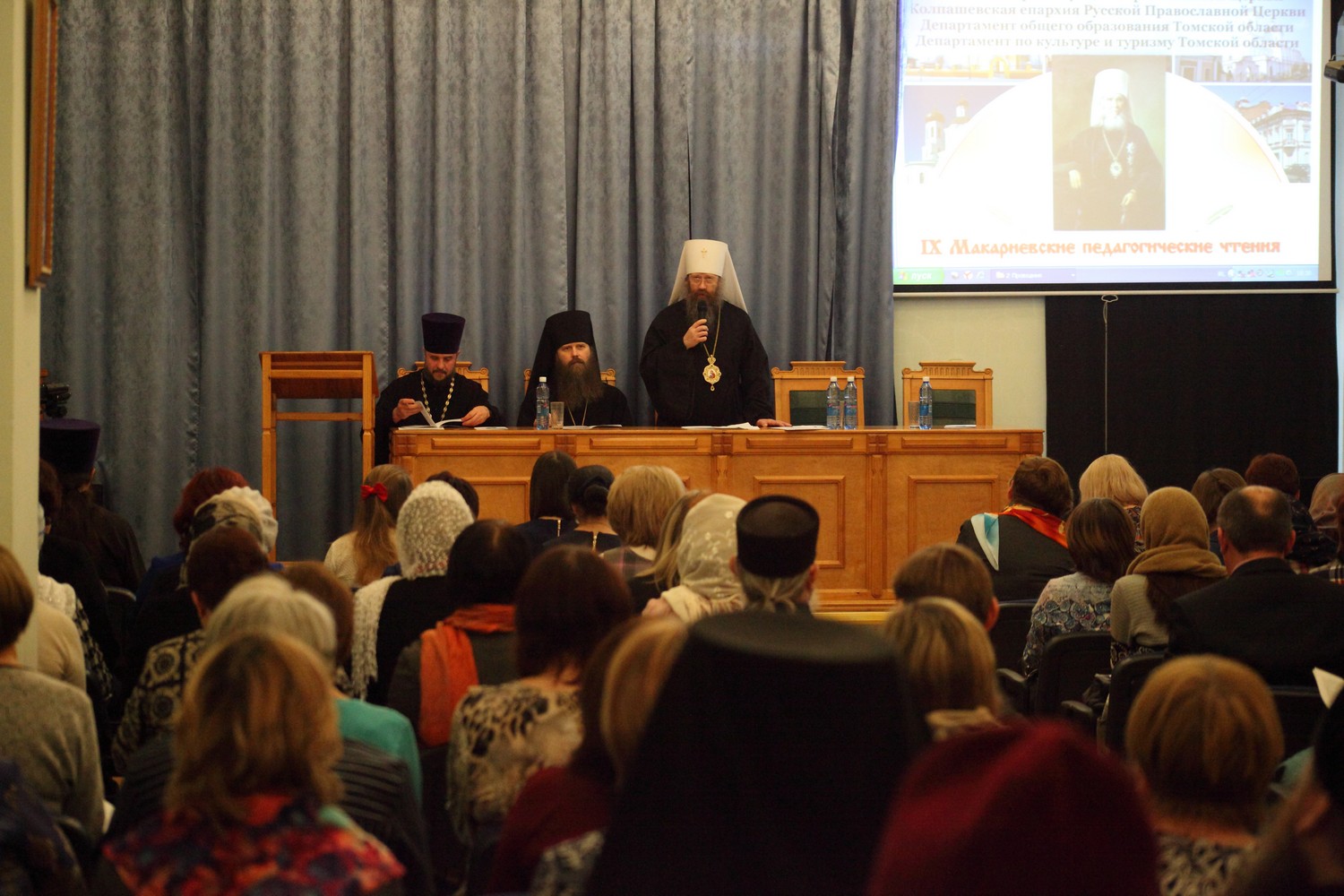|  |  | 1 ноября в Томской духовной семинарии состоялось пленарное заседание IX Макариевских образовательных чтений. Тема чтений: «1917-2017: уроки столетия для Томской земли». Работа чтений началась с приветственных слов митрополита Томского и Асиновского Ростислава и епископа Колпашевского и Стрежевского Силуана. Заместитель начальника Департамента общего образования Томской области Вторина Елена Вениаминовна также приветствовала присутствующих и вручила награды победителям регионального этапа Всероссийского конкурса в области педагогики, воспитания и работы с детьми школьного возраста и молодежью до 20 лет на соискание премии «За нравственный подвиг учителя». После награждения с докладами выступили: - Сазонова Наталия Ивановна, доктор философских наук, канд. ист. наук, профессор, зав. кафедрой истории России и методики обучения истории и обществознанию Томского государственного педагогического университета. «Русская Православная Церковь и общество: уроки XX века».