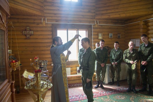 |  |  | 28 июля, в день памяти святого равноапостольного князя Владимира, настоятель храма Владимирской иконы Божией Матери протоиерей Дионисий Степанов встретился с военнослужащими Северской Дивизии войск Национальной гвардии. Уже 17 лет, с 2002 года, по благословению Святейшего Патриарха Московского и всея Руси Алексия II, святой равноапостольный князь Владимир является небесным покровителем войск, сохраняющих внутренний порядок в нашей стране. Перед началом встречи отец Дионисий совершил молебен святому князю Владимиру, а затем напомнил воинам о важности выбора, совершённого Крестителем Руси. – Вопрос, который является основой жизни для каждого человека – о её смысле и будущей ответственности, по промыслу Бога, совпал с вопросом сплочения образующегося нового государства. И ярый язычник, жестокий, гордый, властолюбивый князь сумел этот вопрос не только для себя поставить, но и ответить на него переменой своей жизни, сравнимой по масштабу только с новым рождением. Его личный выбор духовного пути стал началом новой цивилизации – будущей Святой Руси. Мы – наследники приобретённых им духовных сокровищ. Но то, что мы получаем без особого труда, редко оцениваем по достоинству. Желаю каждому из нас перемен, пусть не столь масштабных, как у равноапостольного князя Владимира, но необходимых для того, чтобы разделить грядущую вечность с сонмом святых земли русской, – сказал протоиерей Дионисий.