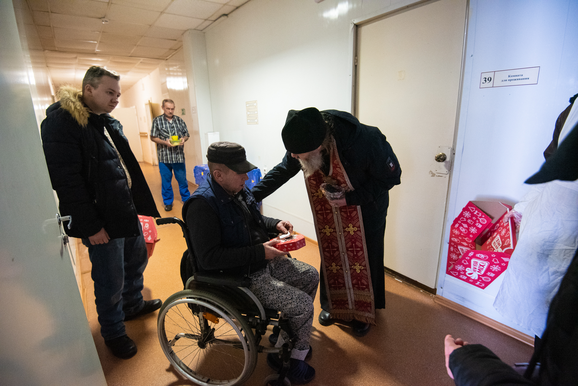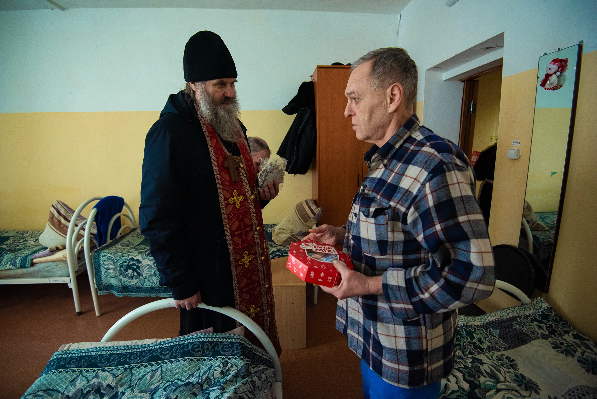 После этого протоиерей Николай Абрамов и социальные работники епархии с искренними поздравлениями со Светлым Праздником Рождества Христова посетили сотрудников и подопечных Центра социальной адаптации г. Томска, которым также были вручены подарочные наборы.