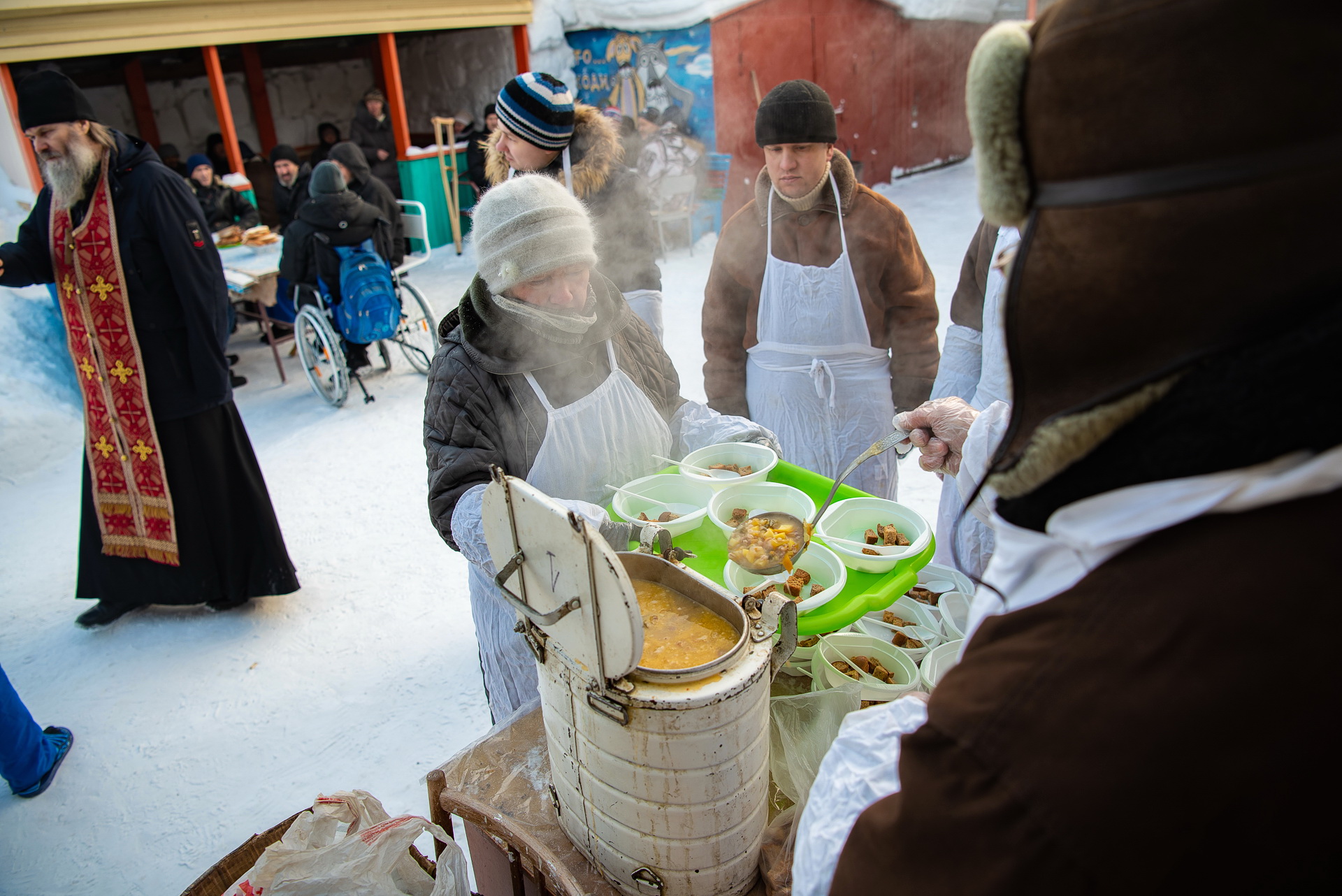 9 января на территории Центра социальной адаптации г. Томска в рамках акции «Горячий обед» силами социальных работников и волонтеров Томской епархии была организована праздничная трапеза для бездомных и малоимущих людей. На трапезу, приуроченную к празднованию Рождества Христова, пришло около 40 человек.