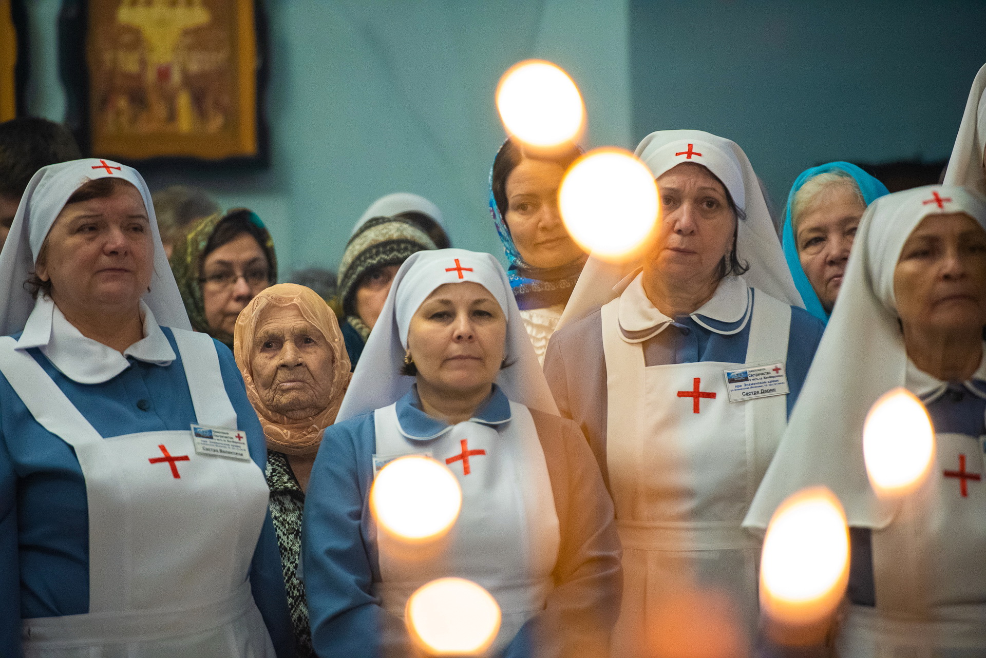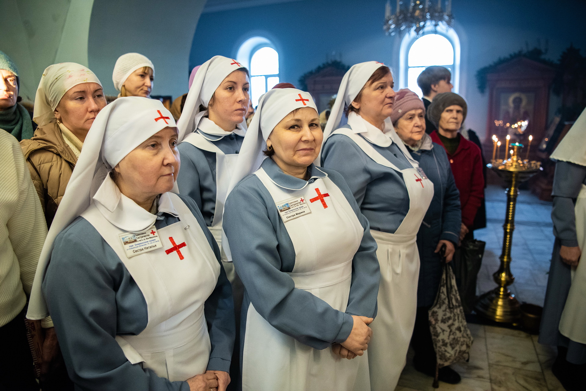 За праздничной литургией молились многочисленные прихожане Знаменского и других томских храмов, а также сёстры милосердия из Сестричества в честь святых Жён-мироносиц.
