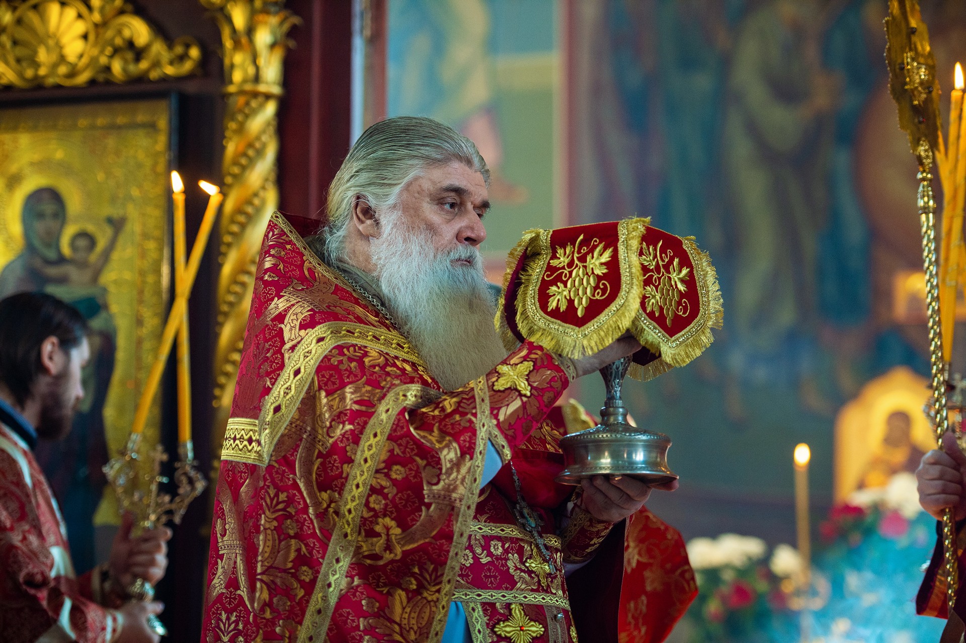 Его Высокопреосвященству сослужили ключарь собора архимандрит Иосиф (Еременко) и духовенство собора.