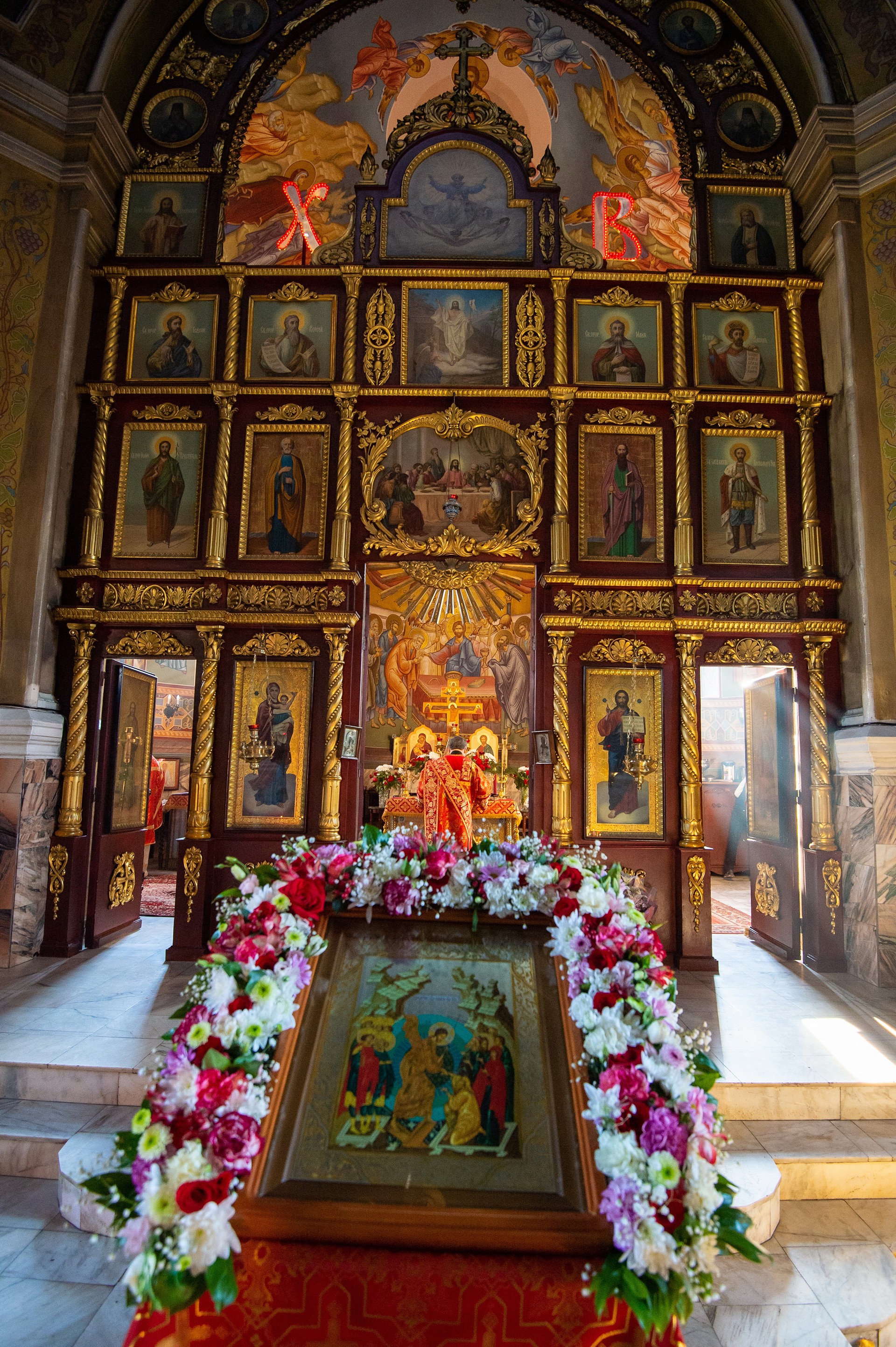 Пасха – радостное переживание священнейшего события – Воскресения из мертвых Господа нашего Иисуса Христа в третий день после дня распятия. «Пасха наша, Христос, заклан за нас» (1 Кор. 5: 7). Воскресение Христово знаменует победу над смертью и прообразует всеобщее воскресение. Пасхальная радость предызображает нескончаемое блаженство в невечерние дни в Царствии Небесном. Праздник Пасхи празднуется в продолжении тридцати девяти дней. Особенно торжественно совершается служба в первые семь дней, на Светлой седмице. Все эти дни царские врата открыты, символически указывая, что Спаситель Своим Воскресением открыл нам Царство Небесное.