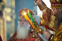 Вечером в среду Светлой седмицы Глава Томской митрополии совершил пасхальное богослужение в Петропавловском соборе г. Томска