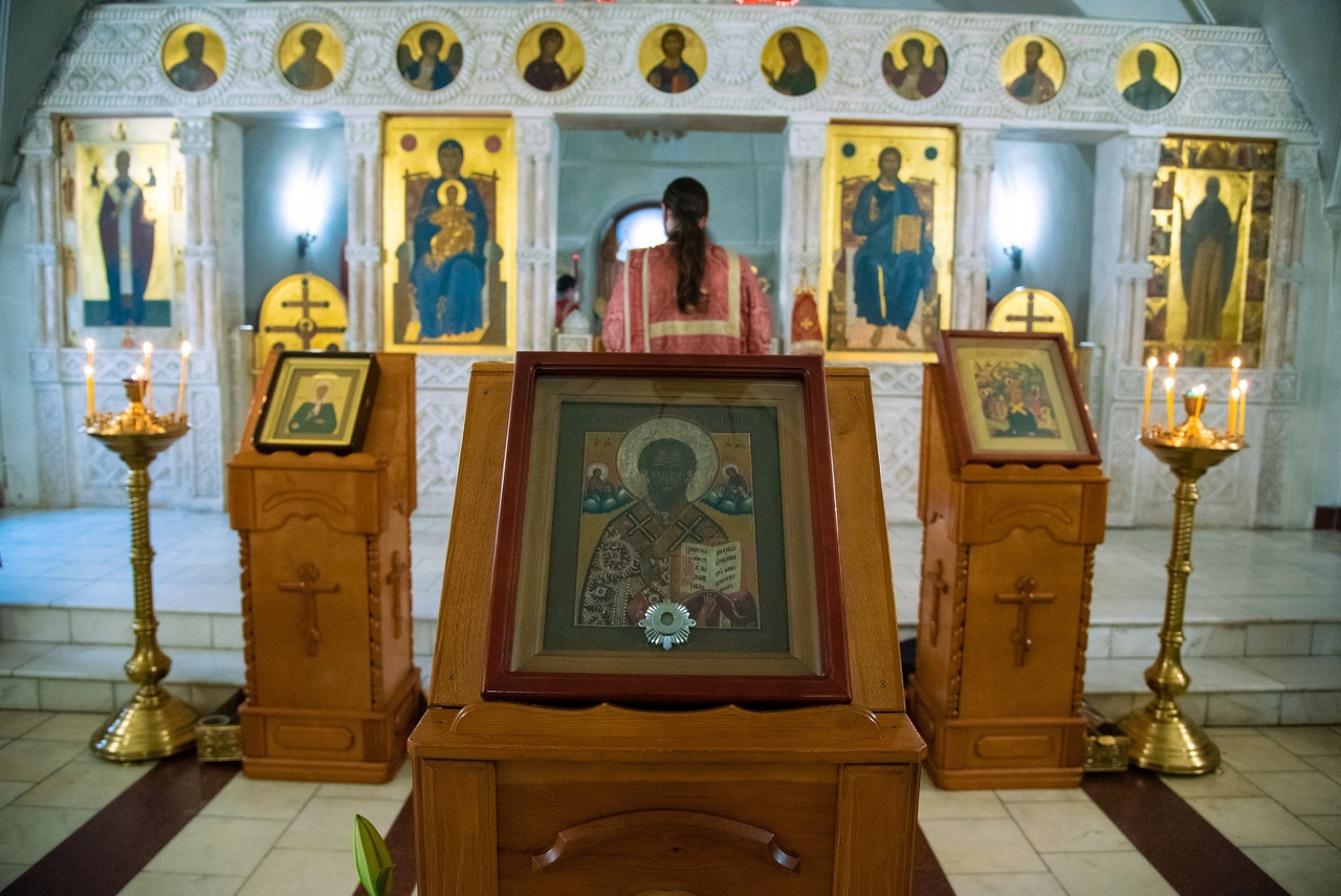 В Арханегельском приделе Богоявленского кафедрального собора также можно поклониться старинному образу святого угодника Божьего, а в дни памяти святителя Николая к иконе крепится мощевик с частицей мощей святого.