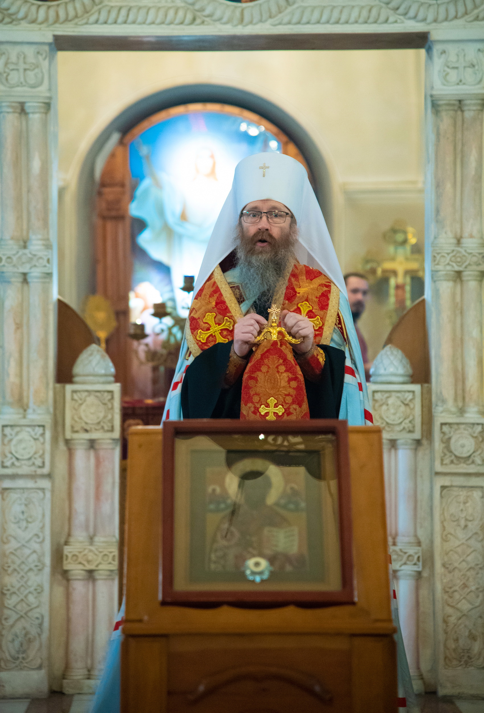 По окончании Литургии Его Высокопреосвященство обратился к собравшимся с архипастырским словом, назвав святителя Николая «милостивым помощником в наших делах, в наших нуждах». Митрополит Ростислав призвал паству к подражанию житию святителя Николая.