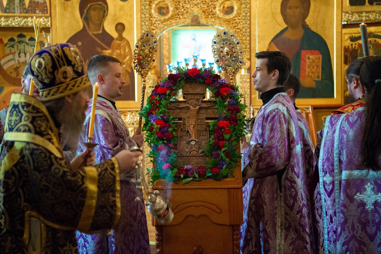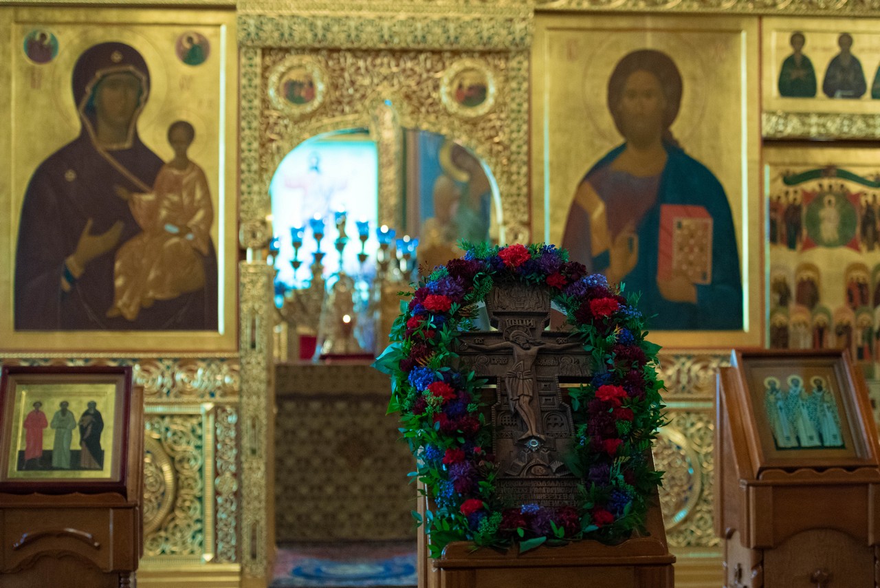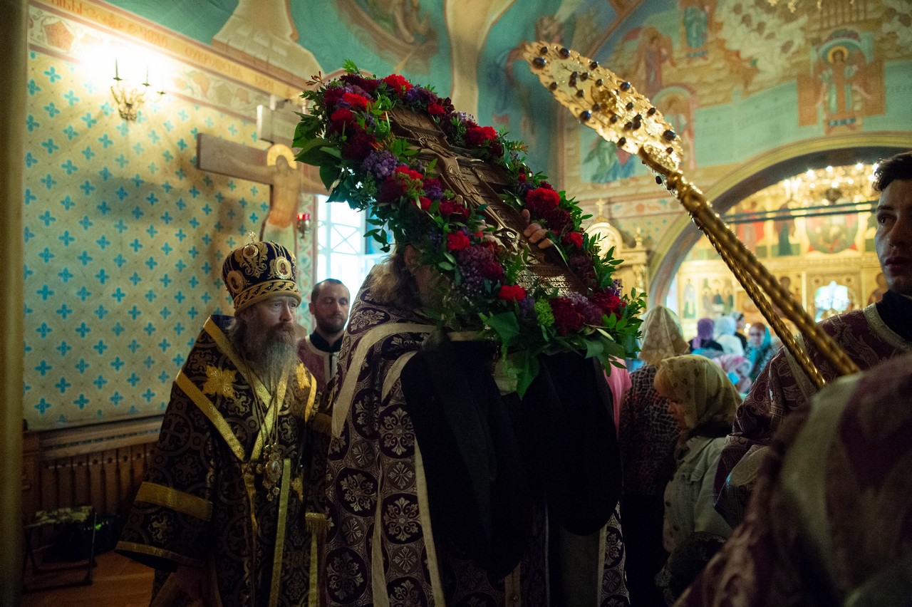 |  |  | 13 августа, в канун праздника Происхождения (изнесения) Честных Древ Животворящего Креста Господня и празднества Всемилостивому Спасу и Пресвятой Богородице, митрополит Томский и Асиновский Ростислав возглавил праздничное Всенощное бдение в Богоявленском кафедральном соборе. Его Высокопреосвященству сослужило духовенство главного томского храма. История этого древнего праздника начинается в Константинополе. Из-за роста болезней местных жителей в августе утвердился обычай износить Честное Древо Креста Господня на дороги и улицы города для его освящения и прекращения болезней. Накануне праздника из царской сокровищницы износили эту великую святыню и полагали в алтаре церкви Святой Софии – Премудрости Божией. С этого дня и до праздника Успения Пресвятой Богородицы по всему городу совершали литии, а затем предлагали Крест народу для поклонения. В нашем городе, в алтаре Богоявленского кафедрального собора, хранится великая святыня – частица Честного Древа Креста Господня. Раз в год распятие со звездицей покидает собор для благословения и освящения города во время Общегородского крестного хода. В этом году, в связи со сложной эпидемиологической ситуацией, традиционный крестный ход был отменен, однако все верующие томичи, собравшиеся на вечернее богослужение, смогли поклониться этой великой святыне.           Фото: Пресс-служба Томской епархии