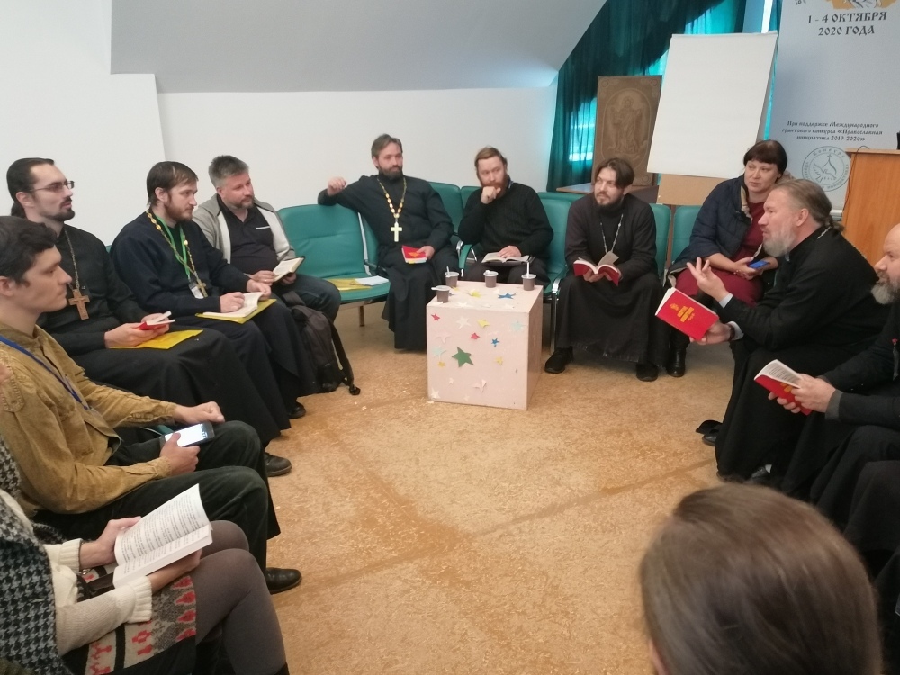 В заключение третьего дня руководитель Миссионерского отдела Томской епархии иерей Алексий Самсонов и руководитель Молодёжного отдела Томской епархии Андрей Юрьевич Труш поделились опытом использования Священного Писания в работе киноклуба «Светлое кино», а иерей Лаврентий Донбай из Горно-Алтайской епархии провёл библейский тренинг «Антисофист».