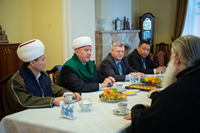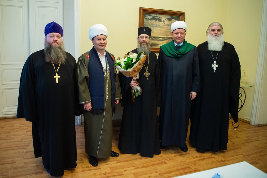 |  |  | 26 ноября в Томском епархиальном управлении состоялась встреча Главы Томской митрополии, митрополита Томского и Асиновского Ростислава с муфтием Москвы, главой Духовного собрания мусульман России Альбиром-хазратом Кргановым. В ходе встречи стороны обсудили перспективы развития сотрудничества Томской митрополии и Регионального Духовного управления мусульман г. Томска и Томской области по противодействию терроризму и псевдорелигиозному экстремизму, совместной работы с молодежью ради укрепления межнационального мира, межэтнического согласия, подлинного уважения к многовековой истории и богатой культуре России. Во встрече приняли участие секретарь Томской епархии архимандрит Иосиф (Еременко), руководитель отдела Томской епархии по взаимоотношению Церкви и общества протоиерей Андрей Туров, председатель РДУМ г. Томска и Томской области муфтий Нурулла-хазрат Турсунбаев, Почетный консул Кыргызстана в Томской области Рустам Абдуманапов, а также вице-президент Сибирского института Евразийских исследований Евгений Петров.    Фото: Пресс-служба Томской епархии