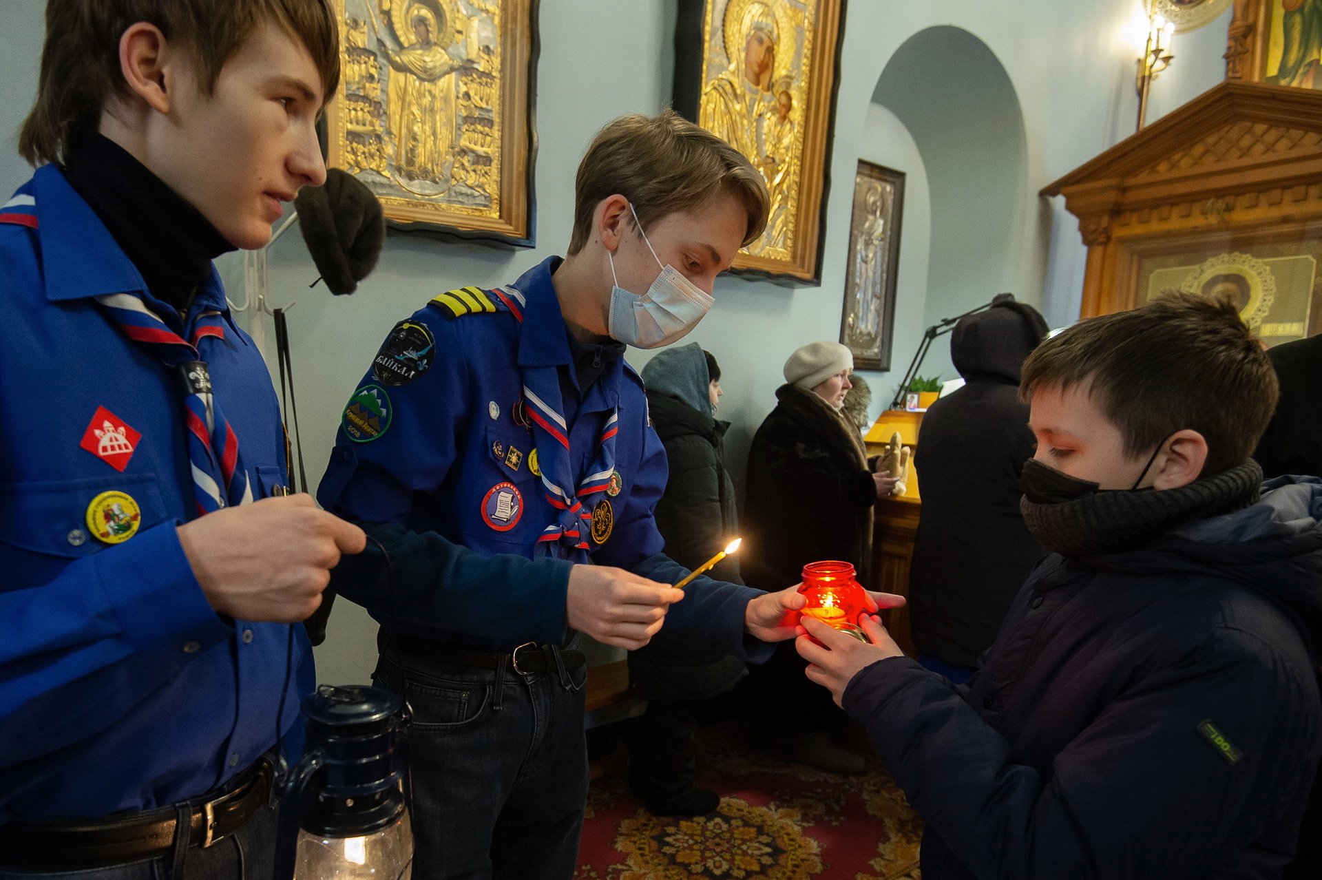 |  |  | 27 декабря представители епархиального Братства православных следопытов торжественно передали частицу Вифлеемского огня в Знаменский храм города Томска. Уже в восьмой раз наш город становится участником акции «Вифлеемский Огонь мира и дружбы». Этот огонь был зажжен от негасимой лампады в храме Рождества Христова в Вифлееме. На месте рождения нашего Спасителя. В Русской Православной Церкви распространением Вифлеемского огня более 20 лет занимается Братство православных следопытов. Его встретили 20 декабря на Крутицком Патриаршем подворье Москвы, после чего увезли частички «света мира и дружбы» по всей России. Томские следопыты приняли «эстафету» Вифлеемского огня в Кемерово. Теперь, пройдя через всю Европу, он прибыл в наш город. Участниками акции прежде всего являются дети и детские организации. Передавая огонь они рассказывают о смысле и евангельском содержании события Рождества Христова тем, кто нуждается в общении, внимании и помощи. Тем, кто, может быть, пока еще далек от Церкви. Для православных следопытов проведение акции «Вифлеемского огня» воплощает идею братства, объединяющего их коллег из разных стран, из различных регионов России, для общего благородного дела, прежде всего дела миссионерства и милосердия. Что касается обычных верующих, то принесённая в дом частица Вифлеемского огня в канун праздника Рождества Христова является одним из символов наступающего праздника, символом света и добра, надежды и любви, мира и дружбы, предвестием радости святой Рождественской ночи.          Фото: Виталий Липатов
