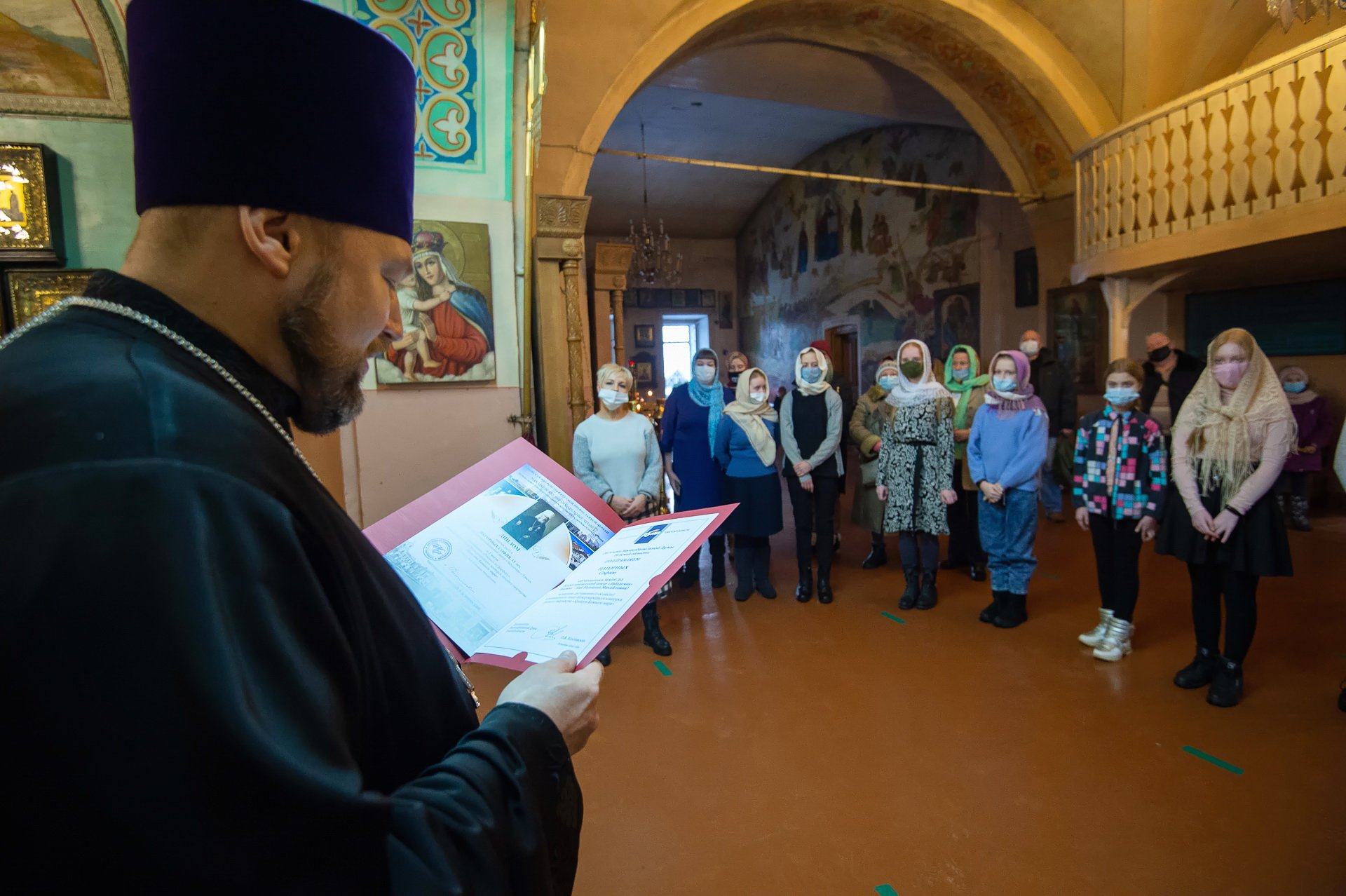 Руководитель Отдела религиозного образования и катехизации Томской епархии протоиерей Святослав Зулин передал детям благословение на дальнейшие труды, диплом и памятный подарок от Его Высокопреосвященства митрополита Томского и Асиновского Ростислава.