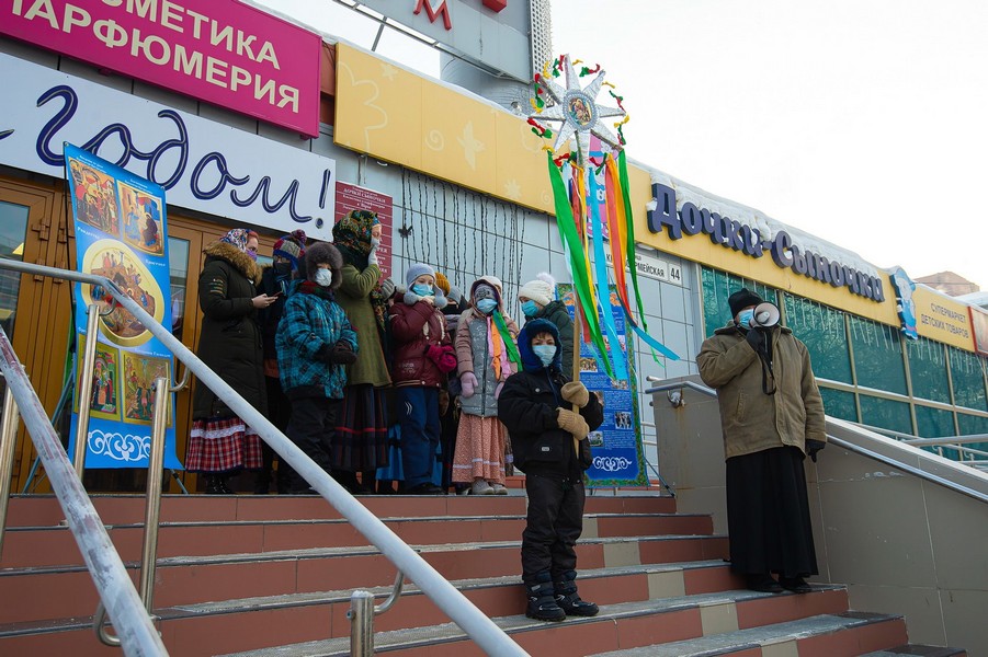 |  |  | По благословению митрополита Томского и Асиновского Ростислава празднование Рождества Христова на Троицком приходе в этом году отметили рождественским автопробегом, пением колядок, христославий и праздничным концертом. Всего в автопробеге приняло участие четыре автомобиля и микроавтобус. Маршрут христославов пролегал от Свято-Троицкого храма до храма Покрова Пресвятой Богородицы в с. Петухово. На остановках настоятель Свято-Троицкой церкви протоиерей Святослав Зулин поздравлял горожан со Светлым праздником, а фольклорная студия «Жаворонки» исполняла тропарь и святочные песнопения. На конечной точке маршрута христославов встретил настоятель Покровского храма иерей Сергий Шитиков. После совместной молитвы участники акции пили чай с праздничным угощением и играли в традиционные святочные игры. В праздничном концерте приняли участие фолк-проект «Гать» (руководитель – Дмитрий Кречет), фольклорная студия «Жаворонки» (руководитель – Виктория Ковалёва) и вокальный ансамбль воскресной школы Свято-Троицкой церкви. По словам организаторов, поездка получилась очень доброй и позитивной. Ощущение праздника сопровождало христославов на всем протяжении рождественского автопробега.          Фото: Пресс-служба Томской епархии