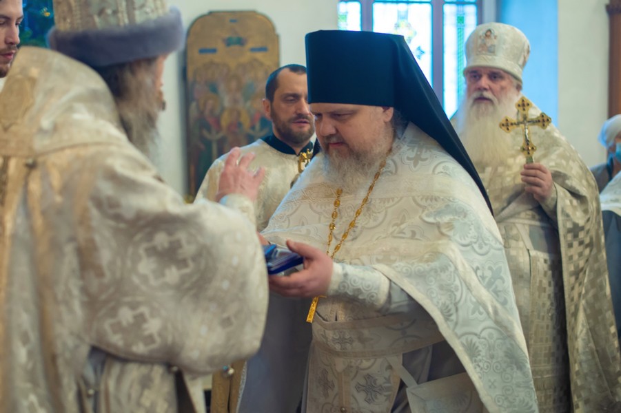 В связи с пятидесятилетнем юбилеем архипастырь наградил насельника обители иеромонаха Иова (Коваля) медалью «За жертвенные труды в Томской епархии Русской Православной Церкви» III степени.