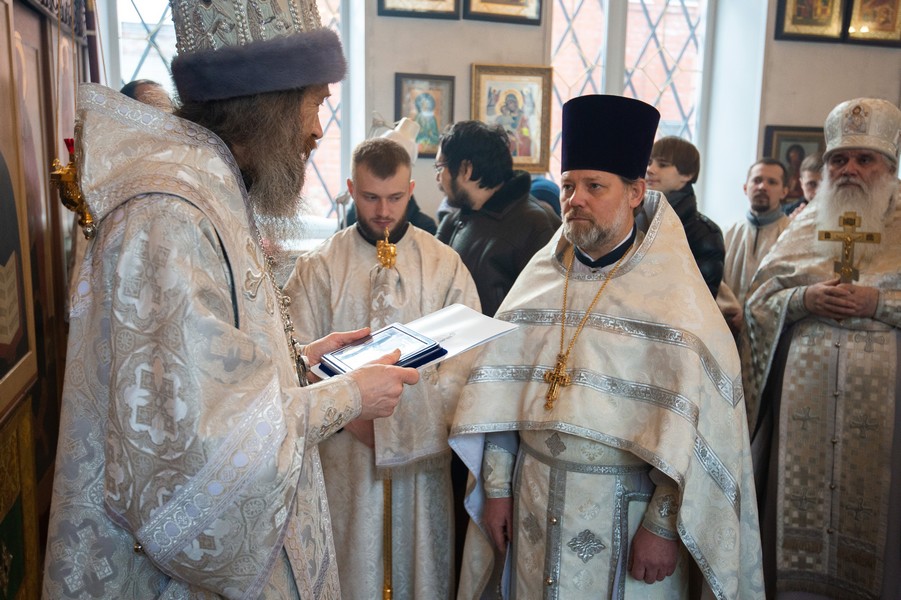 – В этот день хотелось бы Вас поздравить и молитвенно пожелать Вам сил и крепости Божией в несении нелегкого пастырского служения, но которое становится намного легче, если мы возлагаем свое упование не на свои силы, не на свою образованность.., но на Господа, – подчеркнул архипастырь, добавив, что служение пастыря является великим Божиим благословением.