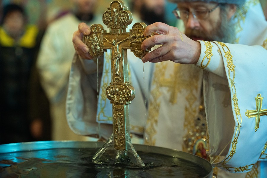 В сам день праздника, 19 января, в сослужении духовенства собора архипастырь возглавил здесь позднюю Божественную литургию, по окончании которой был совершен чин великого освящения воды.