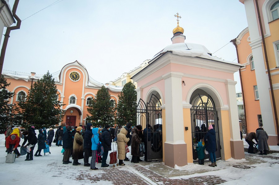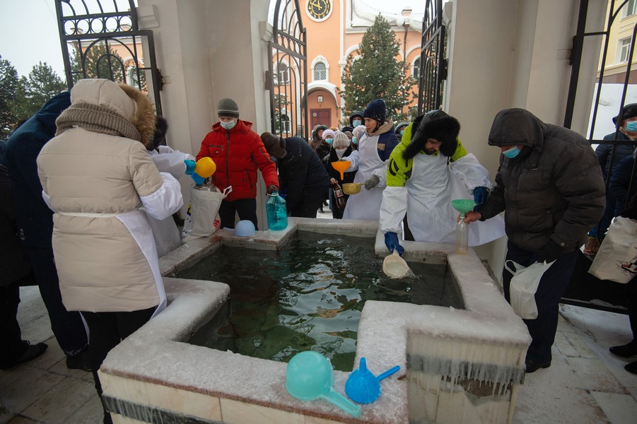 Традиционно по окончании богослужения все прихожане и гости собора были окроплены святой крещенской водой, а затем каждый смог набрать эту великую святыню в свои сосуды.