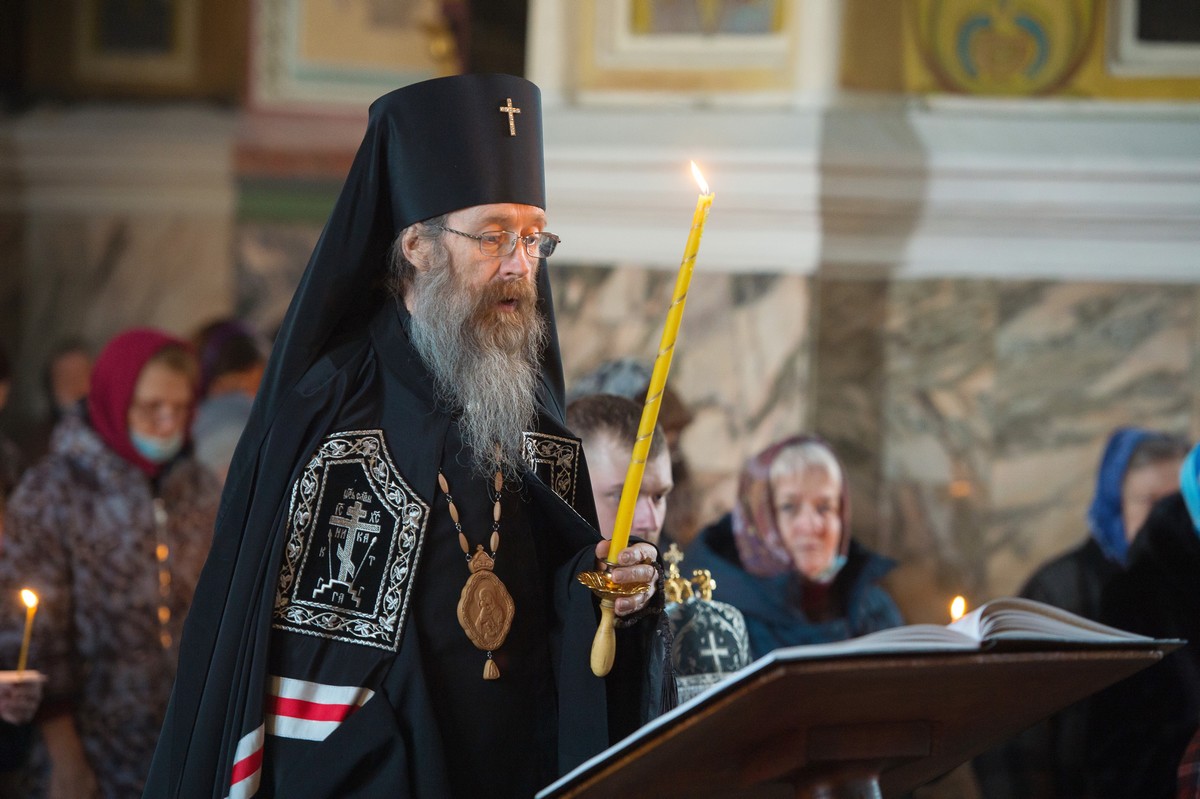 |  |  | Вечером 16 марта, во вторник 1-й седмицы Великого поста, митрополит Томский и Асиновский Ростислав совершил великое повечерие с чтением Великого покаянного канона преподобного Андрея Критского в Петропавловском соборе г. Томска. Песнопения повечерия исполнял хор Петропавловского собора под управлением Р. Беда. За богослужением молились клирики Петропавловского собора, сотрудники Томского епархиального управления, многочисленные прихожане. По окончании богослужения архипастырь благословил прихожан и пожелал всем с Божией помощью не ослабевать в несении великопостнического подвига молитвы и воздержания. Митрополит Ростислав продолжит чтение Великого покаянного канона в среду, 17 марта, в Воскресенском храме, в четверг, 18 марта, в Знаменском храме г. Томска. Начало в 18:00.