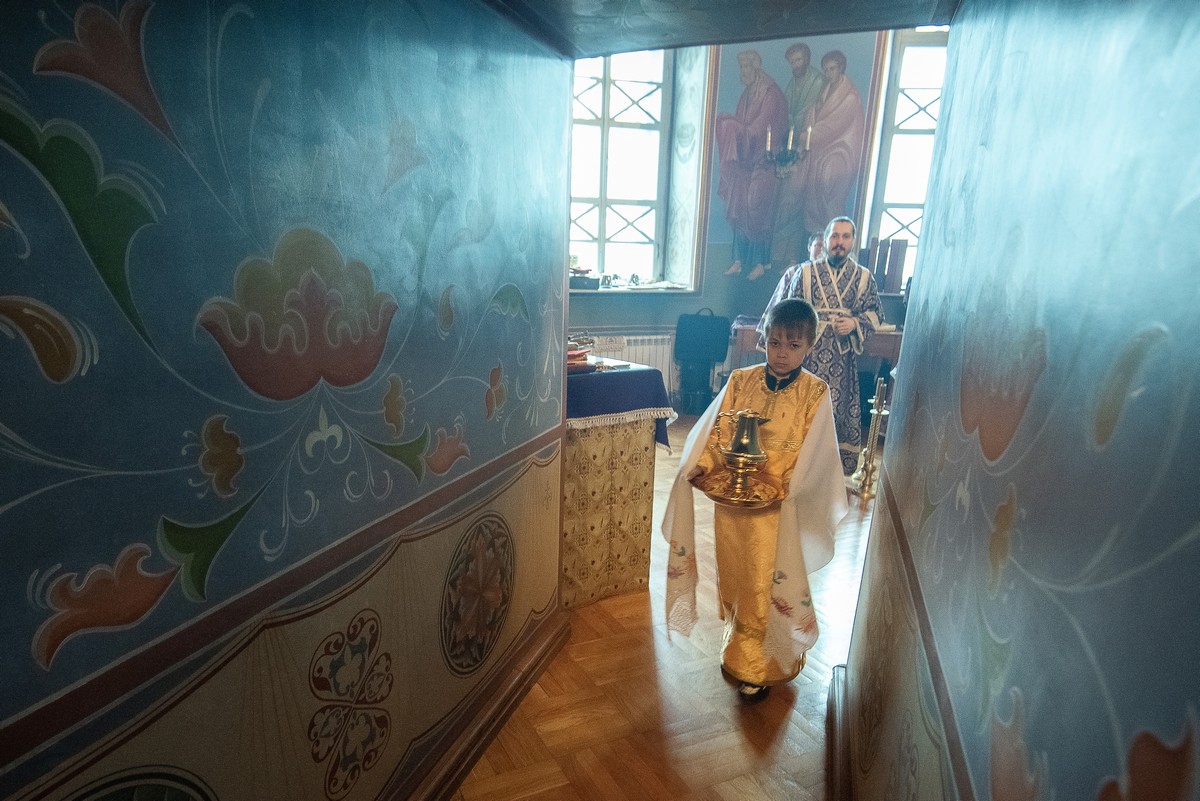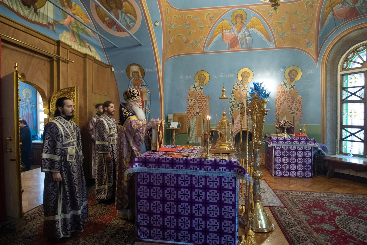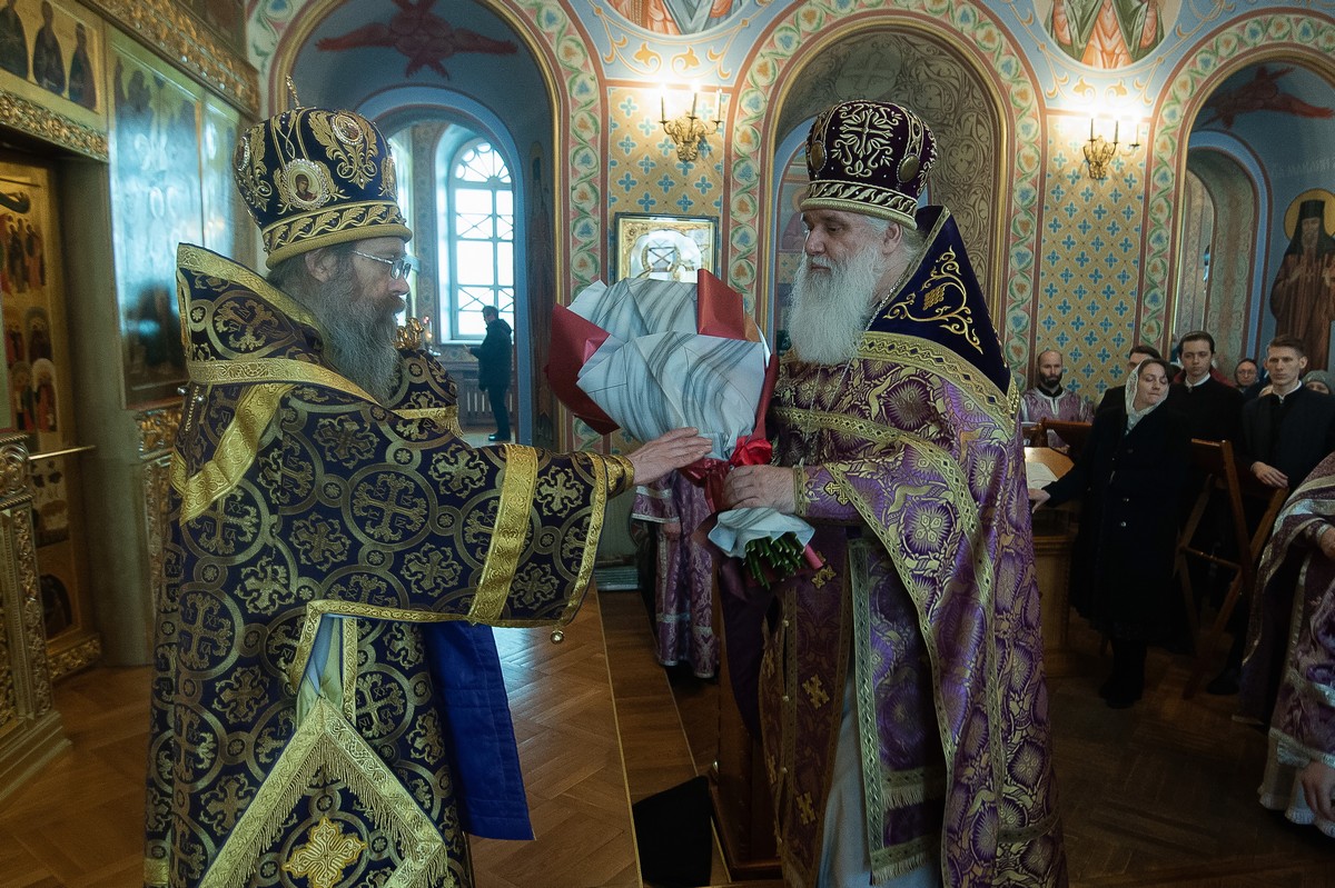После молебна архимандрит Иосиф (Еременко) поздравил Митрополита Ростислава с днем тезоименитства: