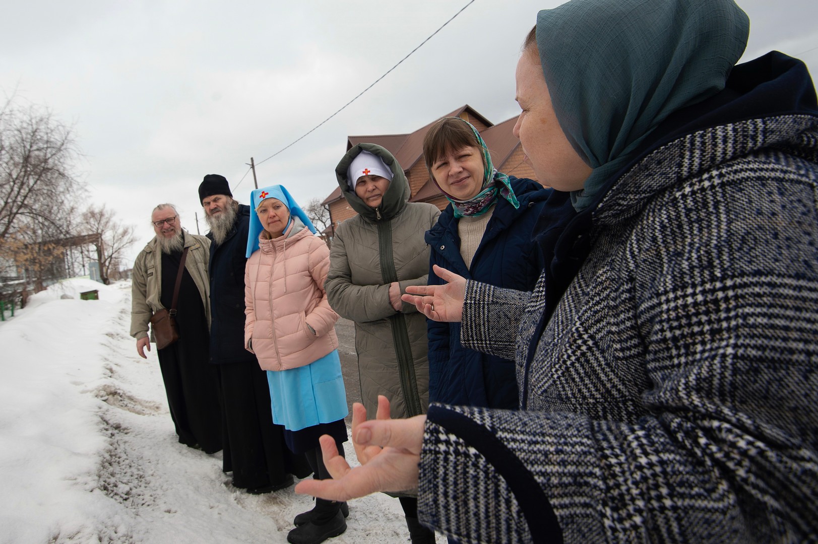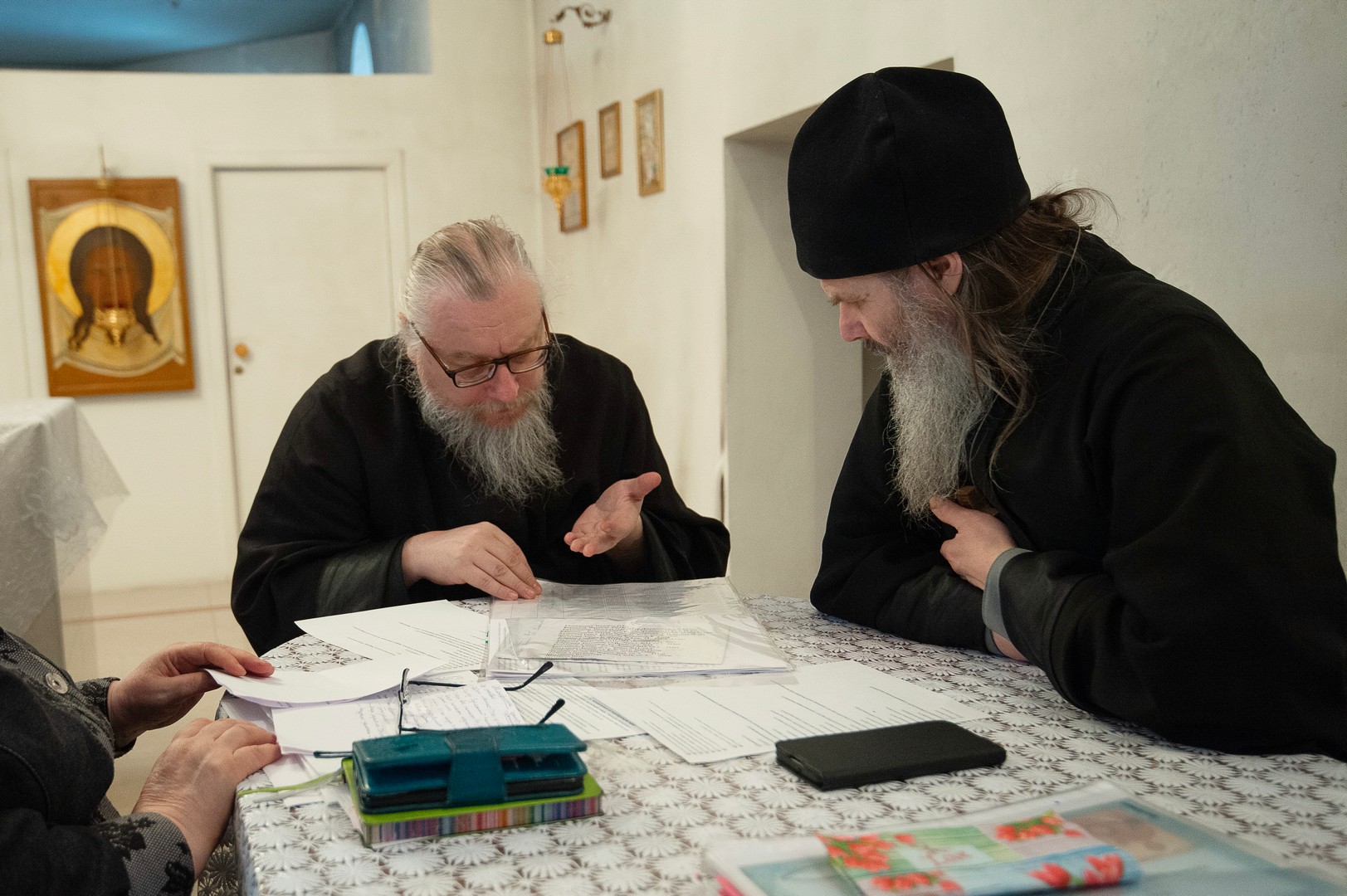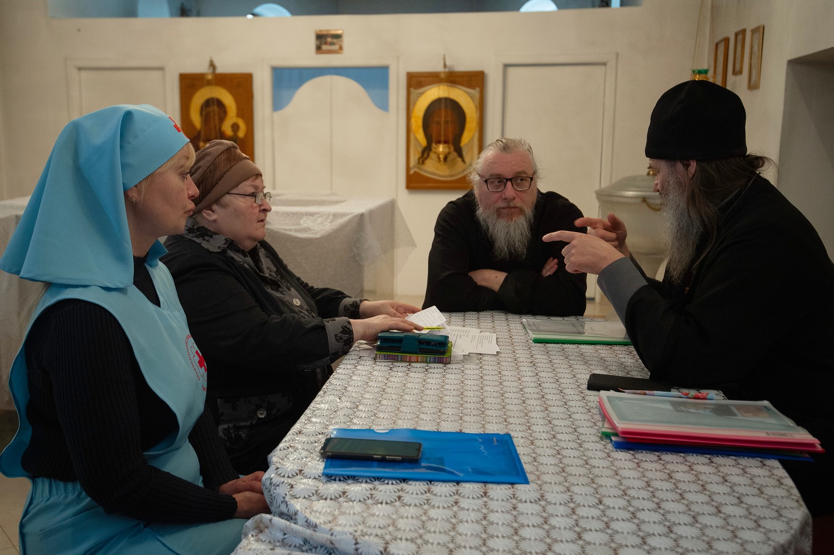 Важным пунктом программы поездки стала беседа о социальном служении. У игумена Феодора (Прокопова) и социального работника Светланы Александровны Левченко было много вопросов к протоиерею Николаю, к бухгалтеру АНОЗ «Дом сестринского ухода» Светлане Павловне Ахметхузиной и социальному работнику Томской епархии Ирине Владимировне Яковенко. Вопросы касались написания гранта, ремонта зданий богадельни и прихода, организации волонтерского движения, детской воскресной школы и т.д.