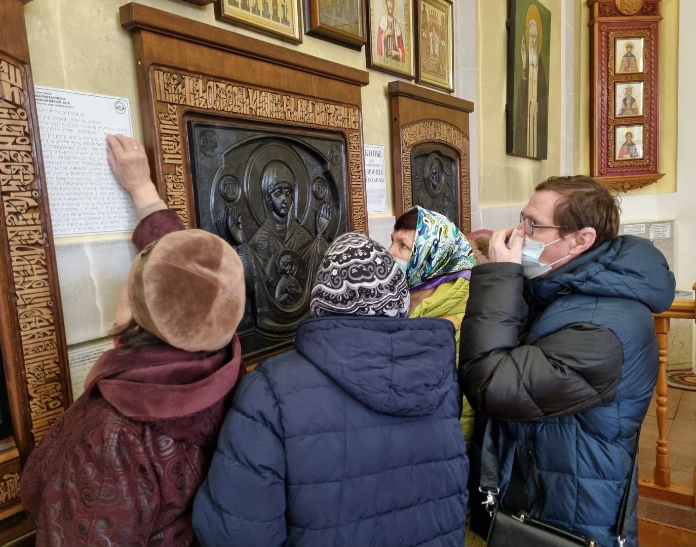 Священник поделился, что экскурсанты пожелали побольше узнать о близком праздновании великого праздника Благовещения Пресвятой Богородицы и чтимых иконах Пречистой Владычицы.