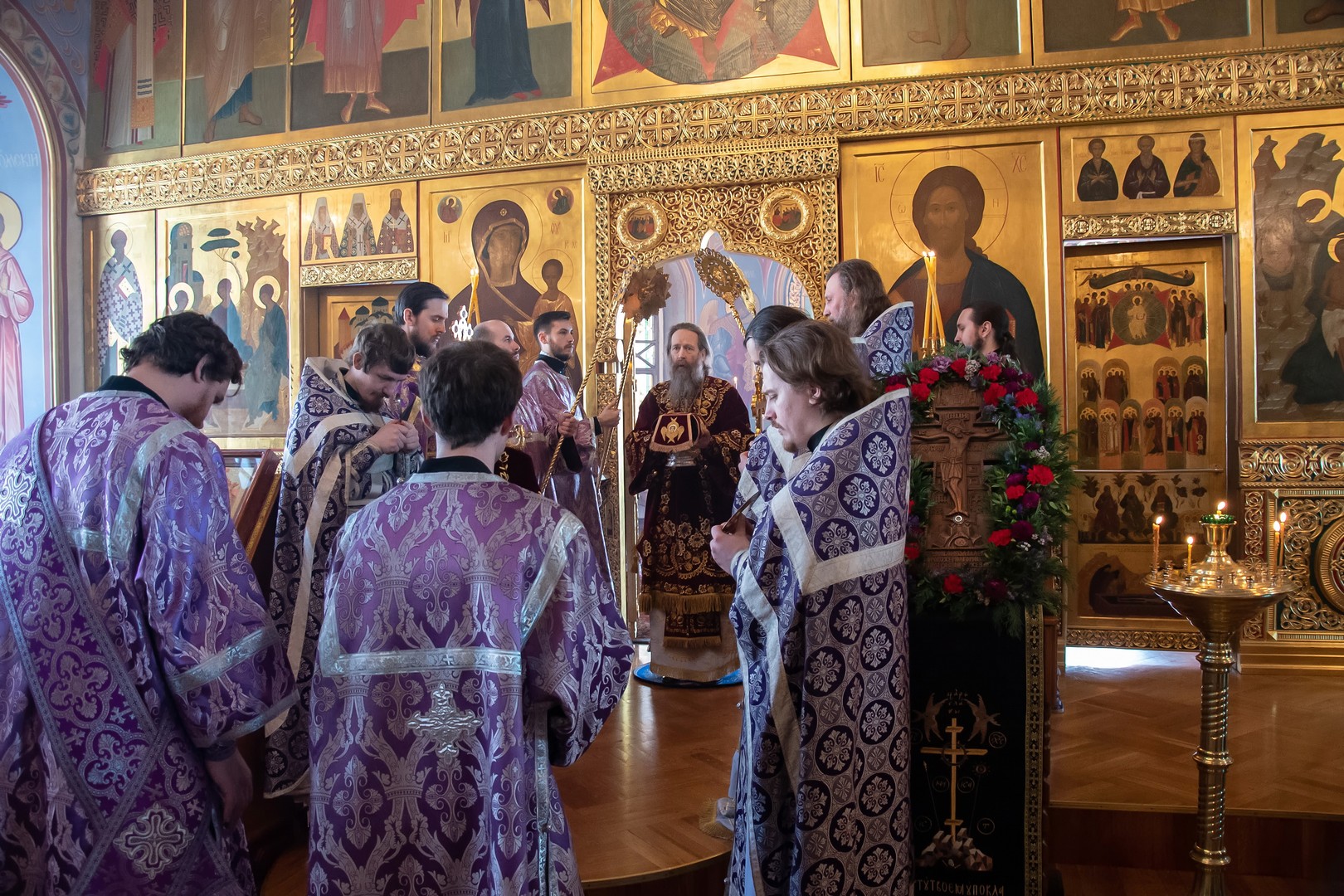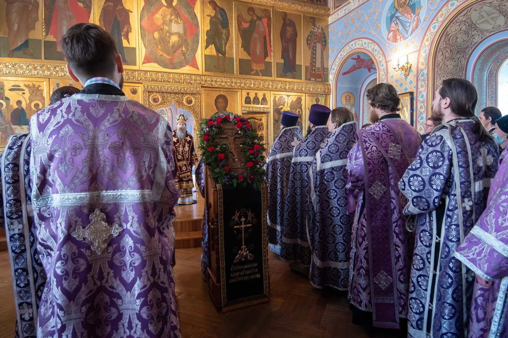 Посреди Святой Четыредесятницы Святая Церковь предлагает чествованию и поклонению нашему Святой Крест Господень. В этом видна Ее о нас материнская попечительность... Она хочет тем ослабевающих в подвигах поста и самоисправления подкрепить, ревностных воодушевить на большие подвиги и всем внушить мысль и намерение до конца жизни неотступно и непоколебимо шествовать вслед Господа под крестом, который каждым взят на себя в час решимости угождать Господу. «Иже хощет по Мне ити, да отвержется себе, и возмет крест свой, и по Мне грядет» (Мк. 8:34), – сказал Господь ученикам Своим, призвав их пред Себя, как сегодня слышали мы в Евангелии. И мы призваны пред лице Господа в святой храм Его для слышания учения Его. Мы стоим пред лицом распятого на Кресте Господа; взоры и объятия Его устремлены на нас. Пред Ним обнажены наши души; тайные мысли и сокровенные ощущения наши явны Ему. Он видит все намерения наши; Он видит правды и согрешения, содеянные нами от юности нашей; видит всю жизнь нашу и прошедшую и будущую; несодеянное еще нами, уже написано в книзе Его.
