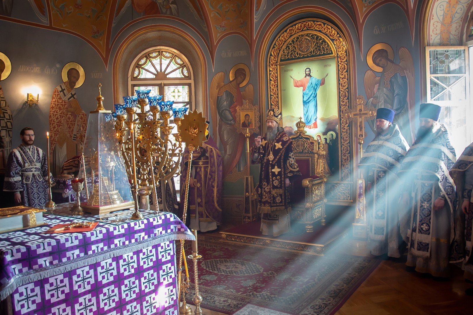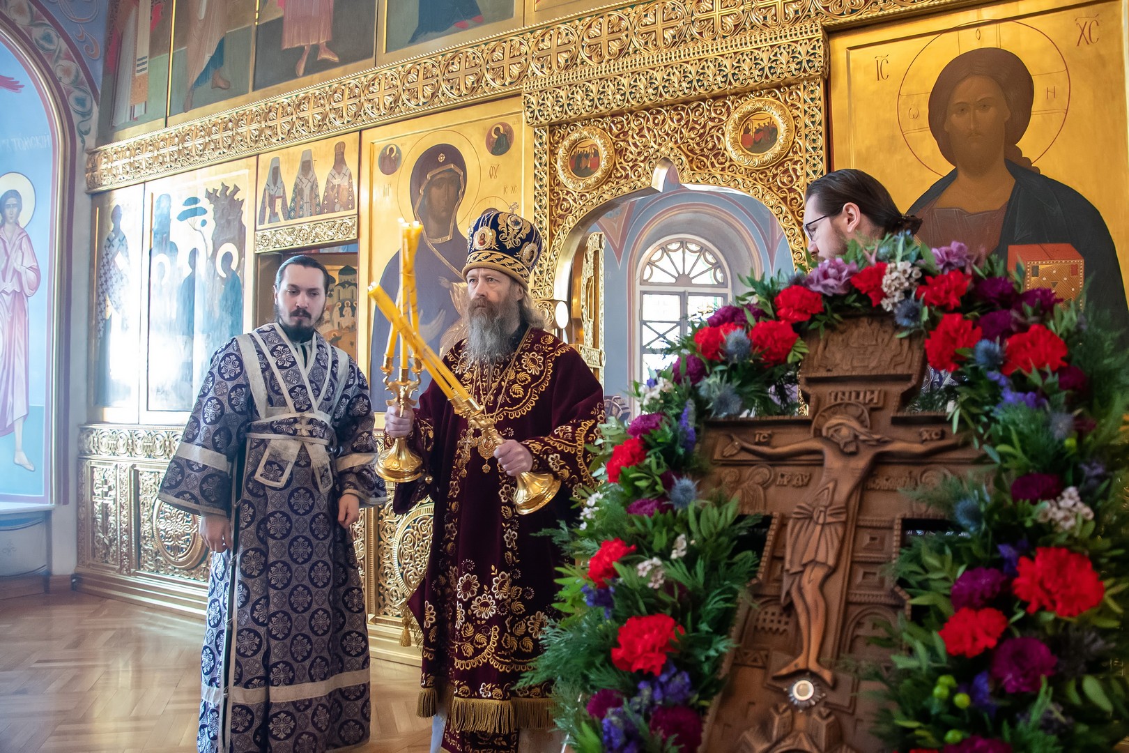 4 апреля, в Крестопоклонную Неделю Великого поста, в Богоявленском кафедральном соборе была совершена праздничная Божественная литургия. Его Высокопреосвященству сослужило духовенство собора. В завершении Литургии архипастырь совершил поклонение изнесенному накануне Животворящему Кресту Господню и обратился к пастве с проповедью.